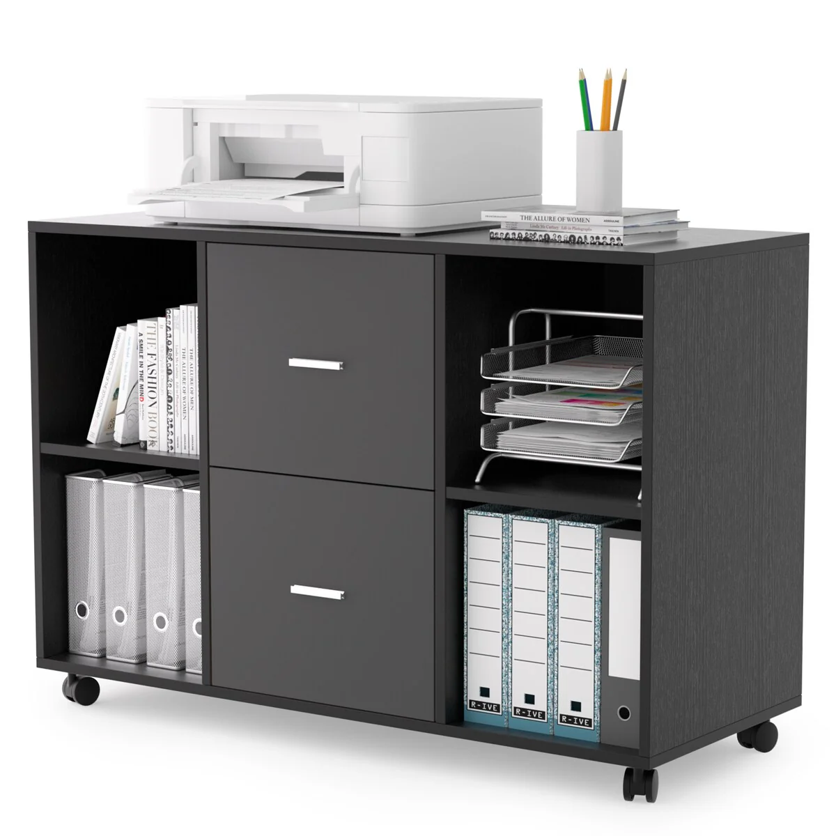 Mobile Lateral File Cabinet Printer Stand with 2 Drawers
