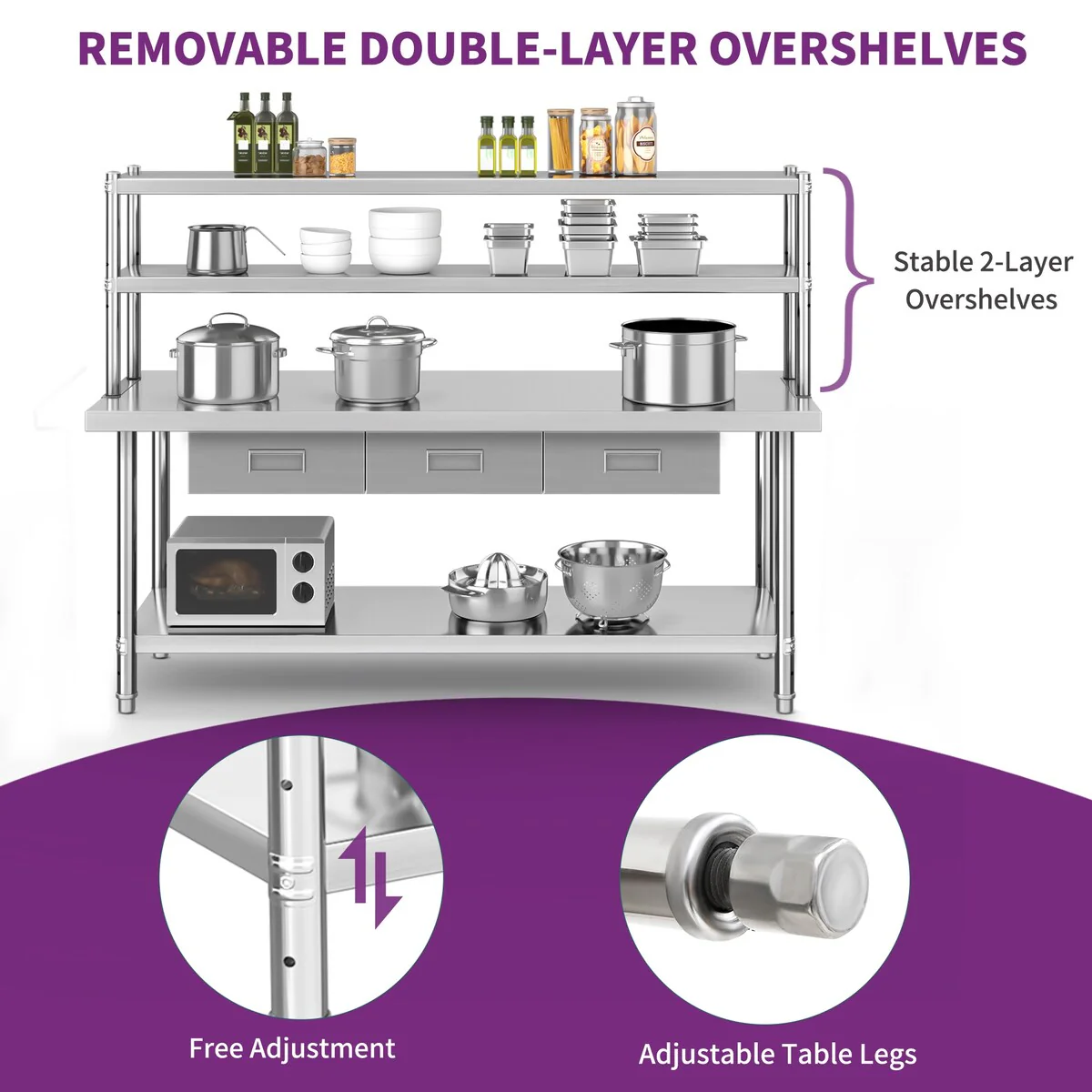 72'' Stainless Steel Commercial Work Table with Shelf