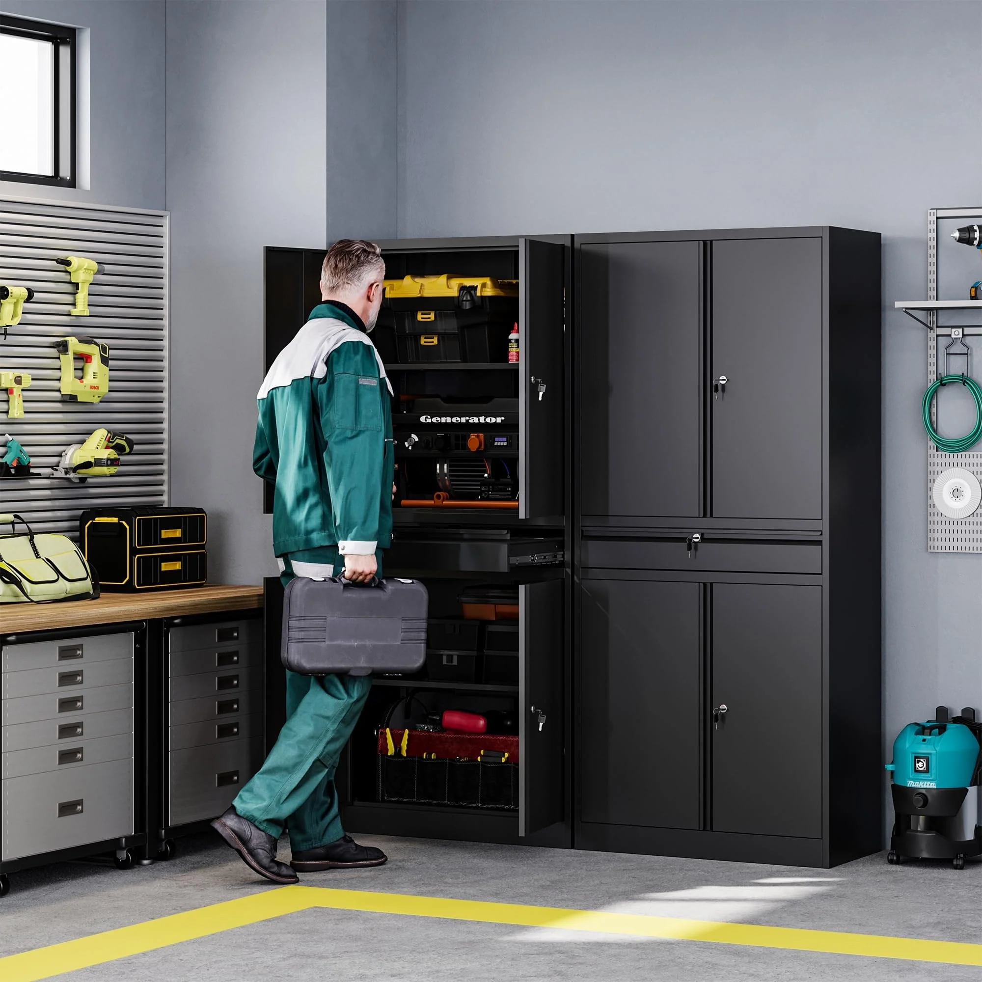 Metal Garage Storage Cabinet Tool Cabinet with Drawer - N/A