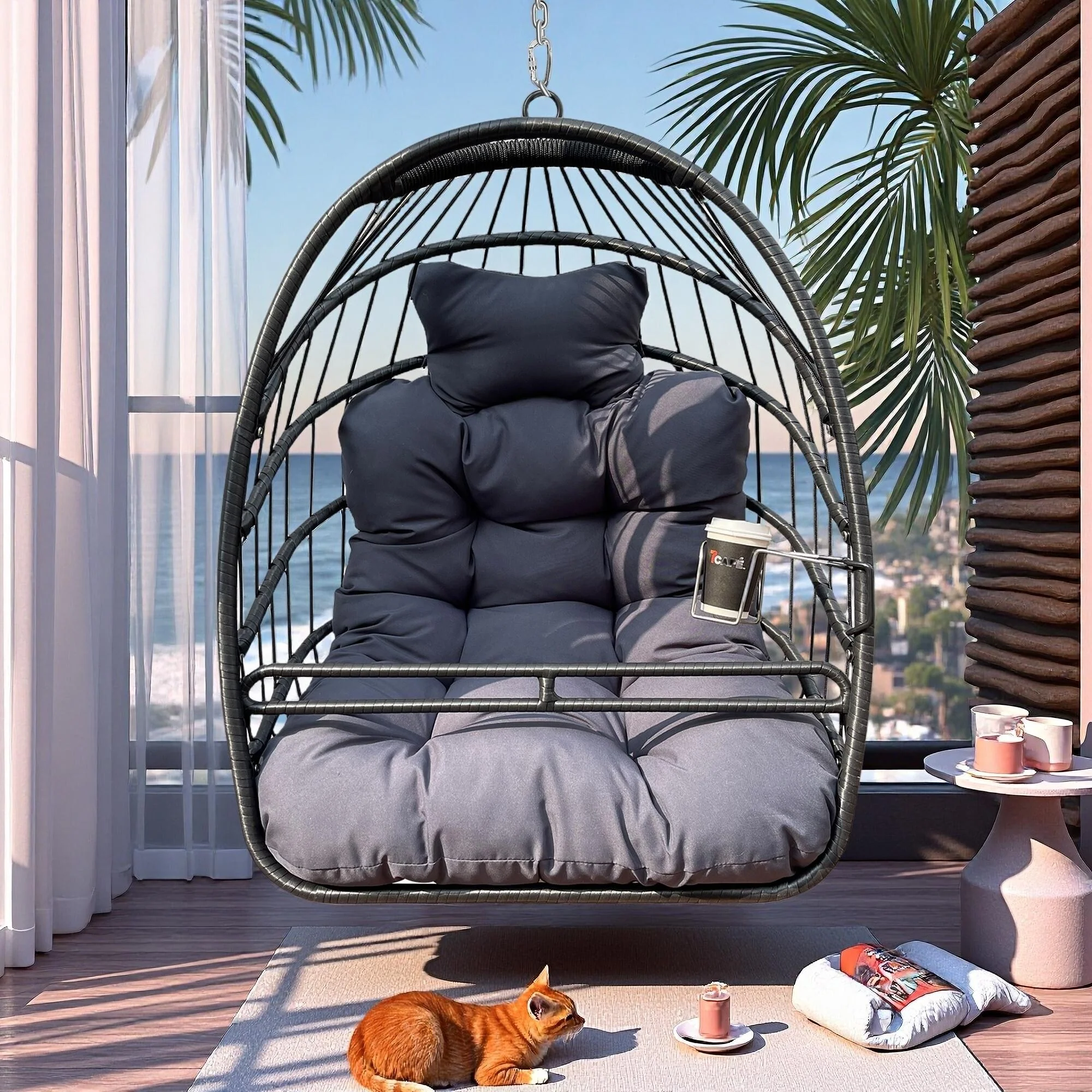 Steel 2-Seat PE Rattan Porch Swing