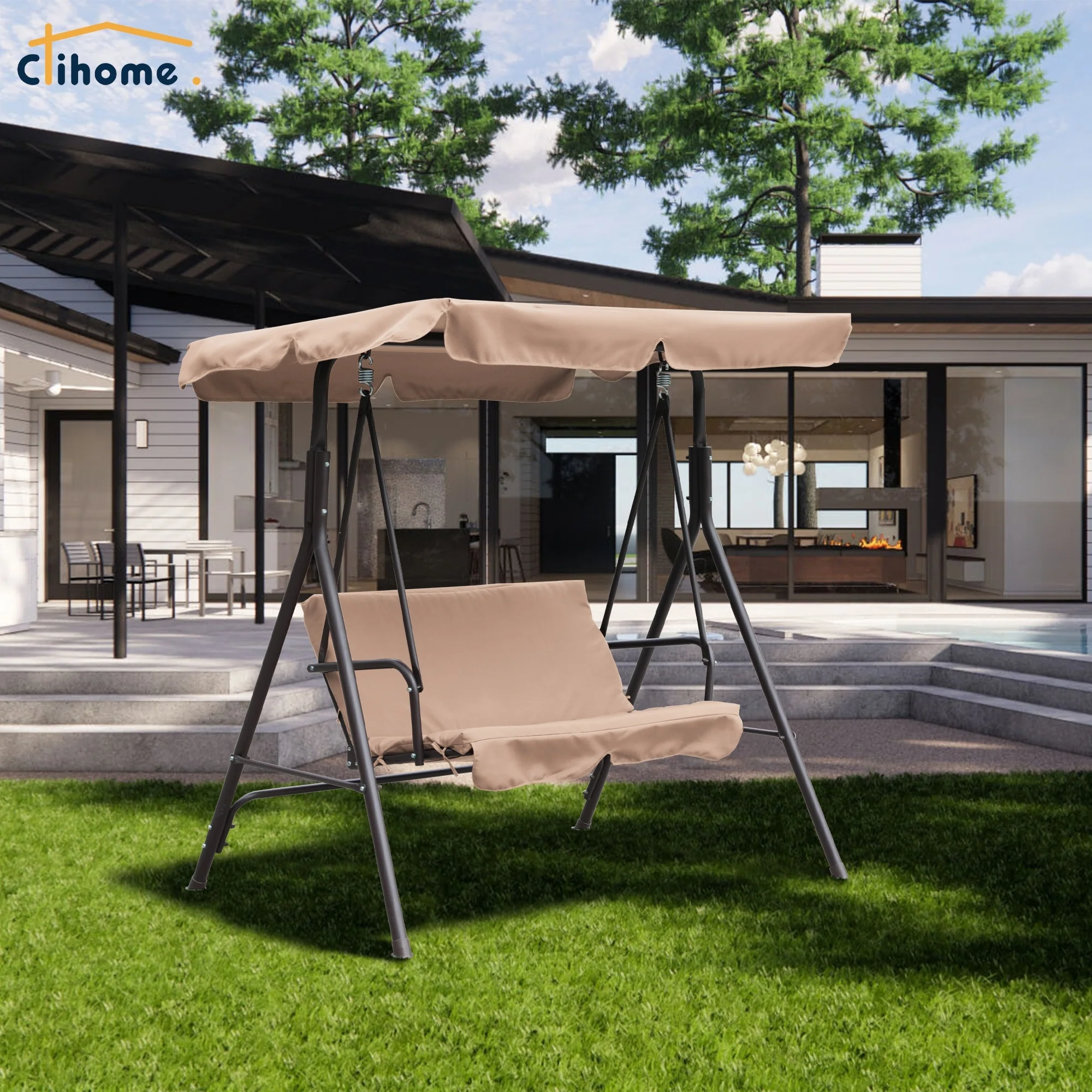 Clihome 2 Person Outdoor Porch Swing with Removable Cushions