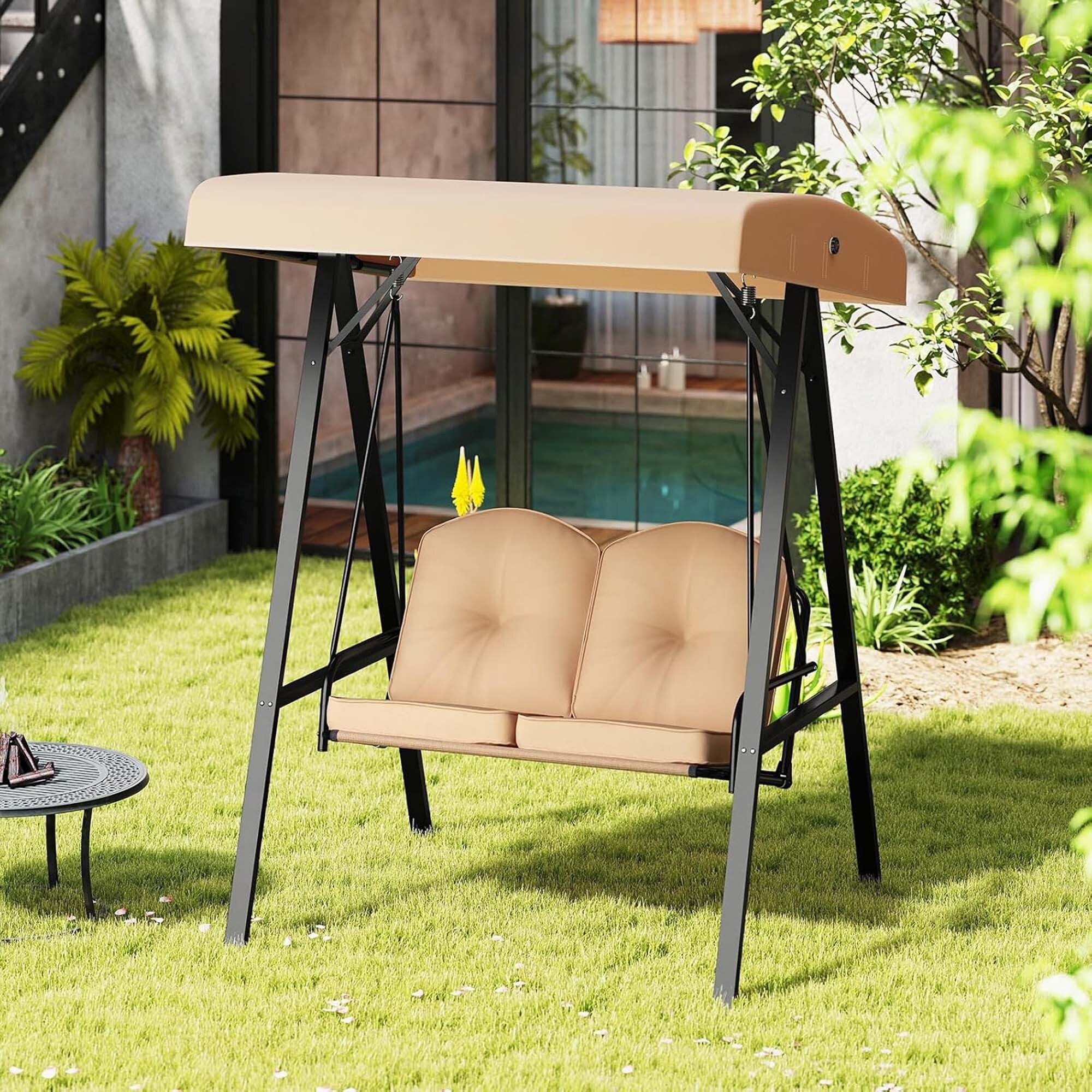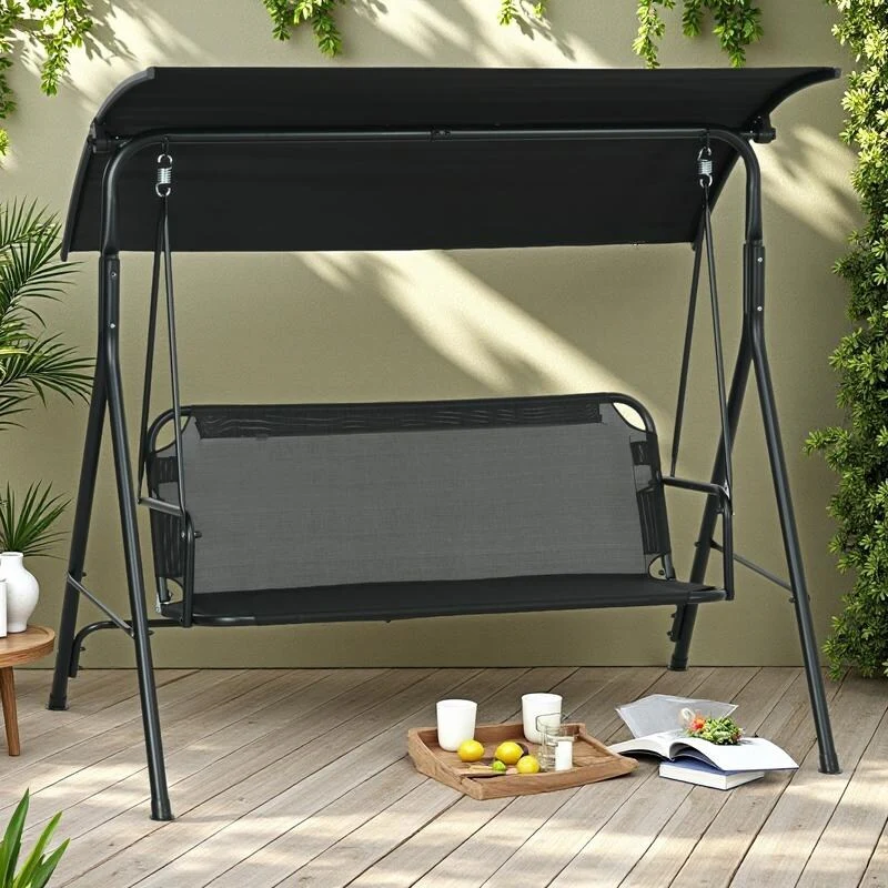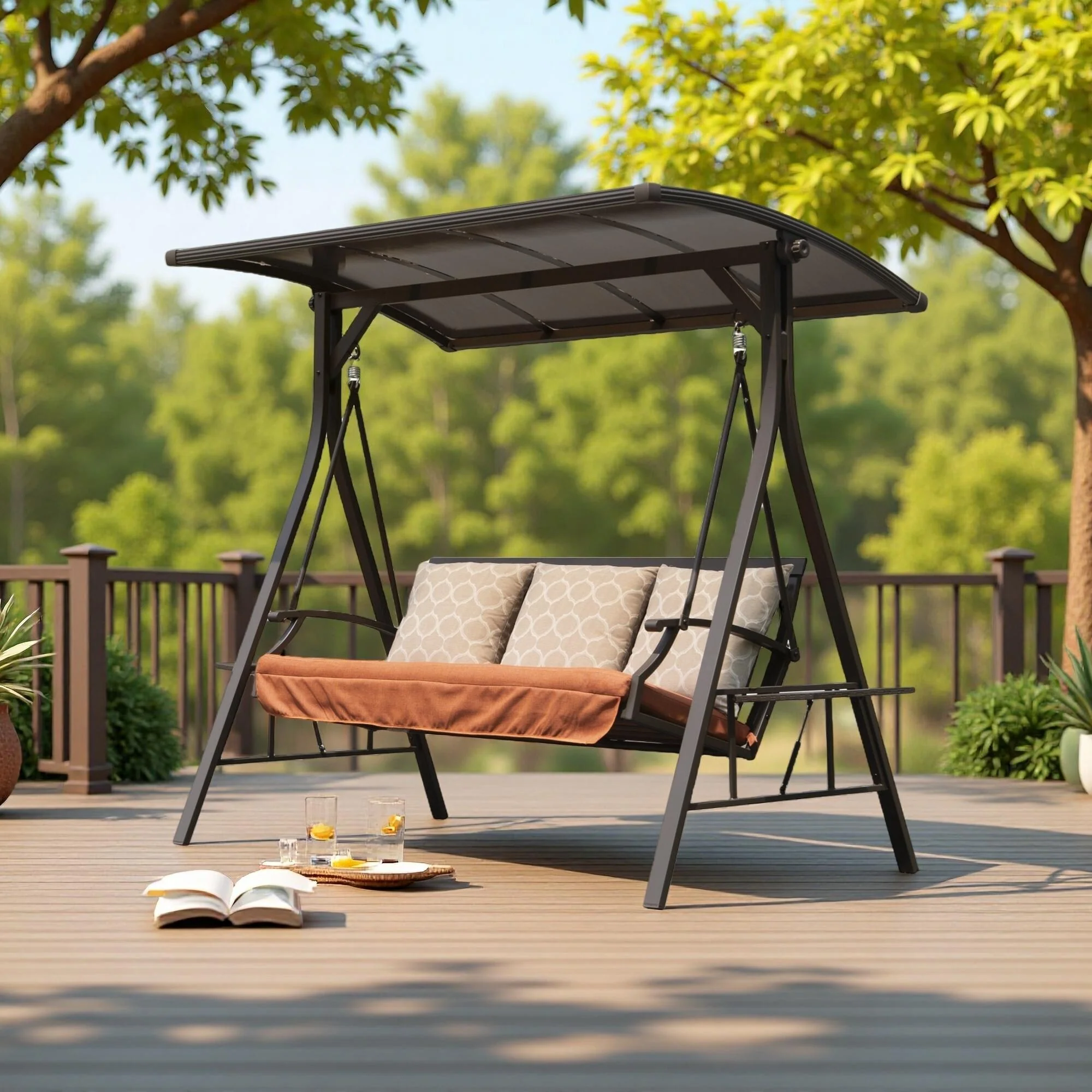 Steel 2-Seat Patio Swing with Table & Holders