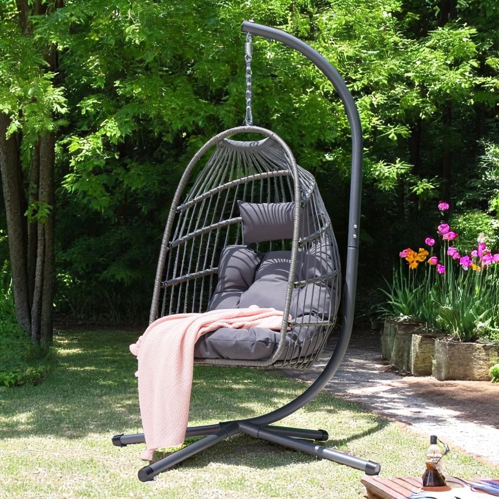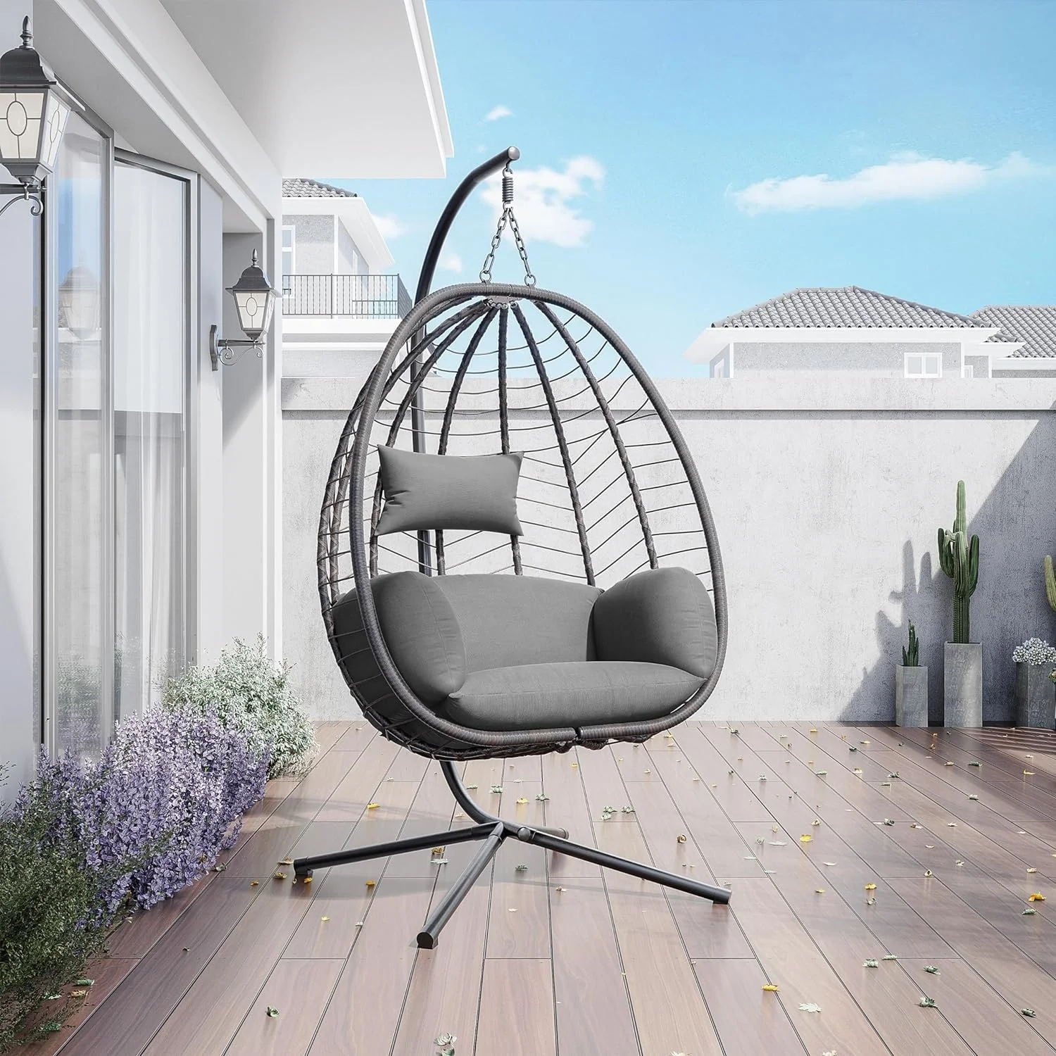 Outdoor Wicker Hammock Hanging Egg Chair with Stand