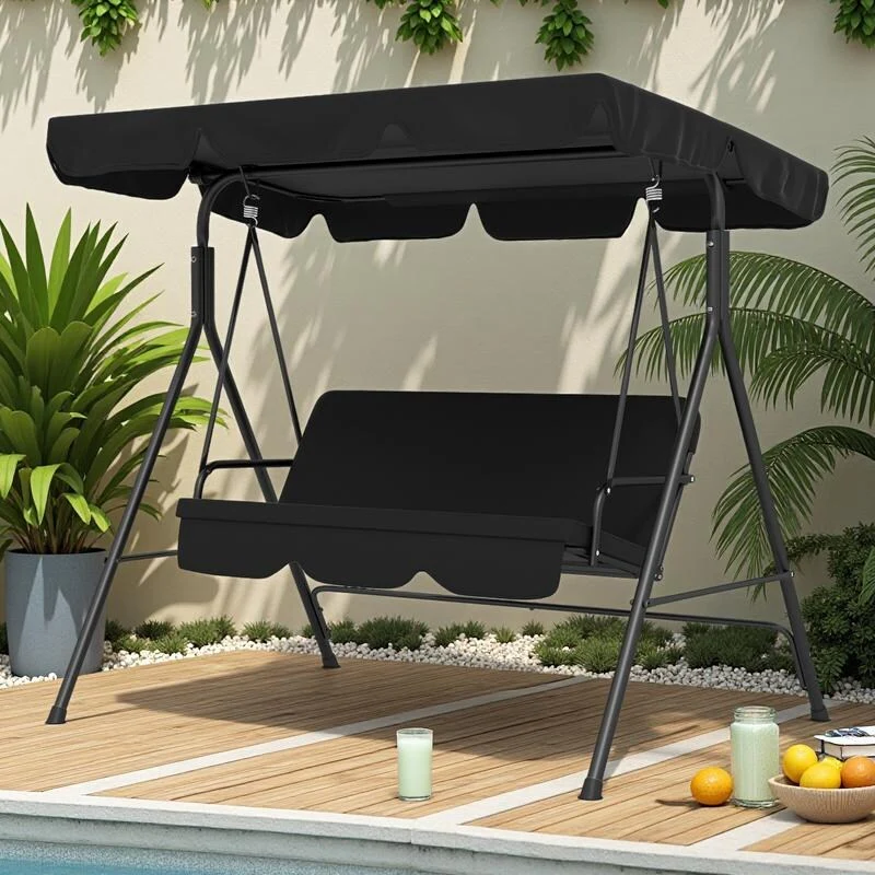 3-Seat Patio Swing Chair w/ Adjustable Canopy, Removable Cushion