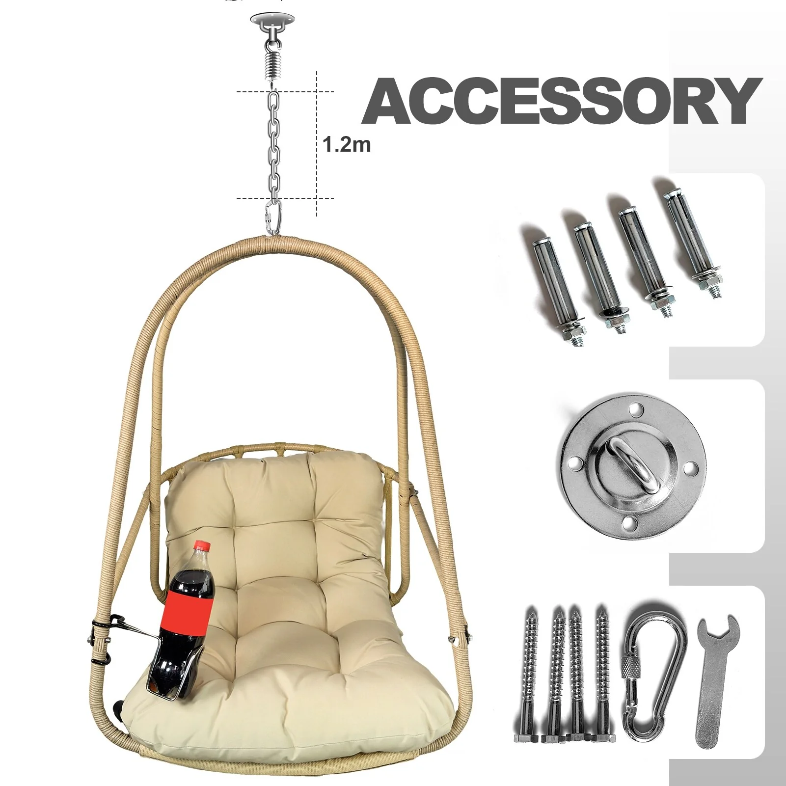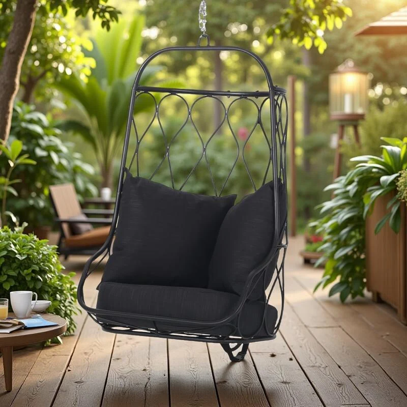 Iron Hanging Chair with Wicker Design