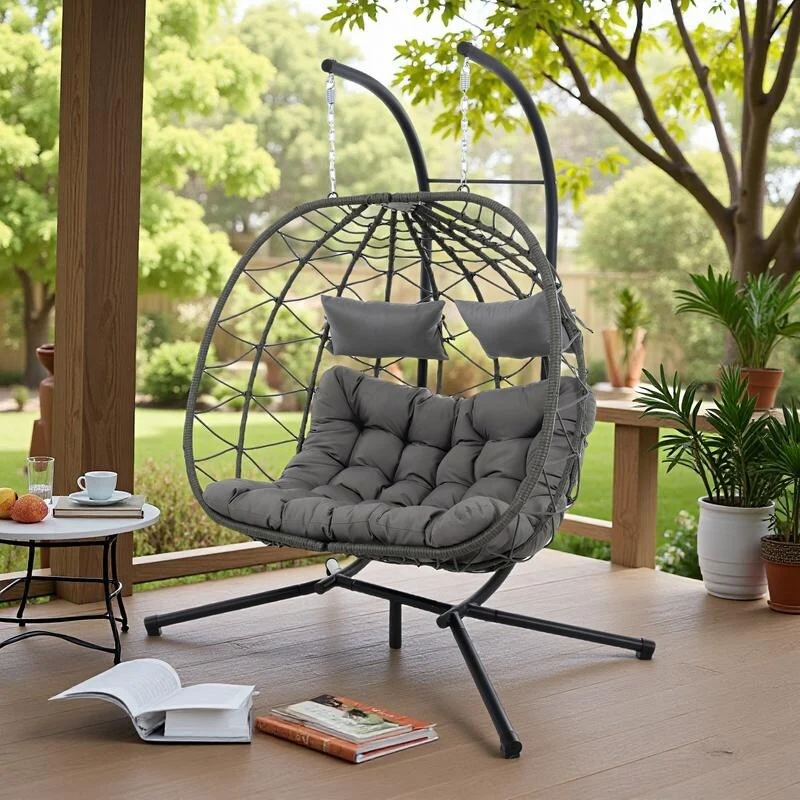 Andrei Double Hanging Egg Chair with Cushion - Dark Gray