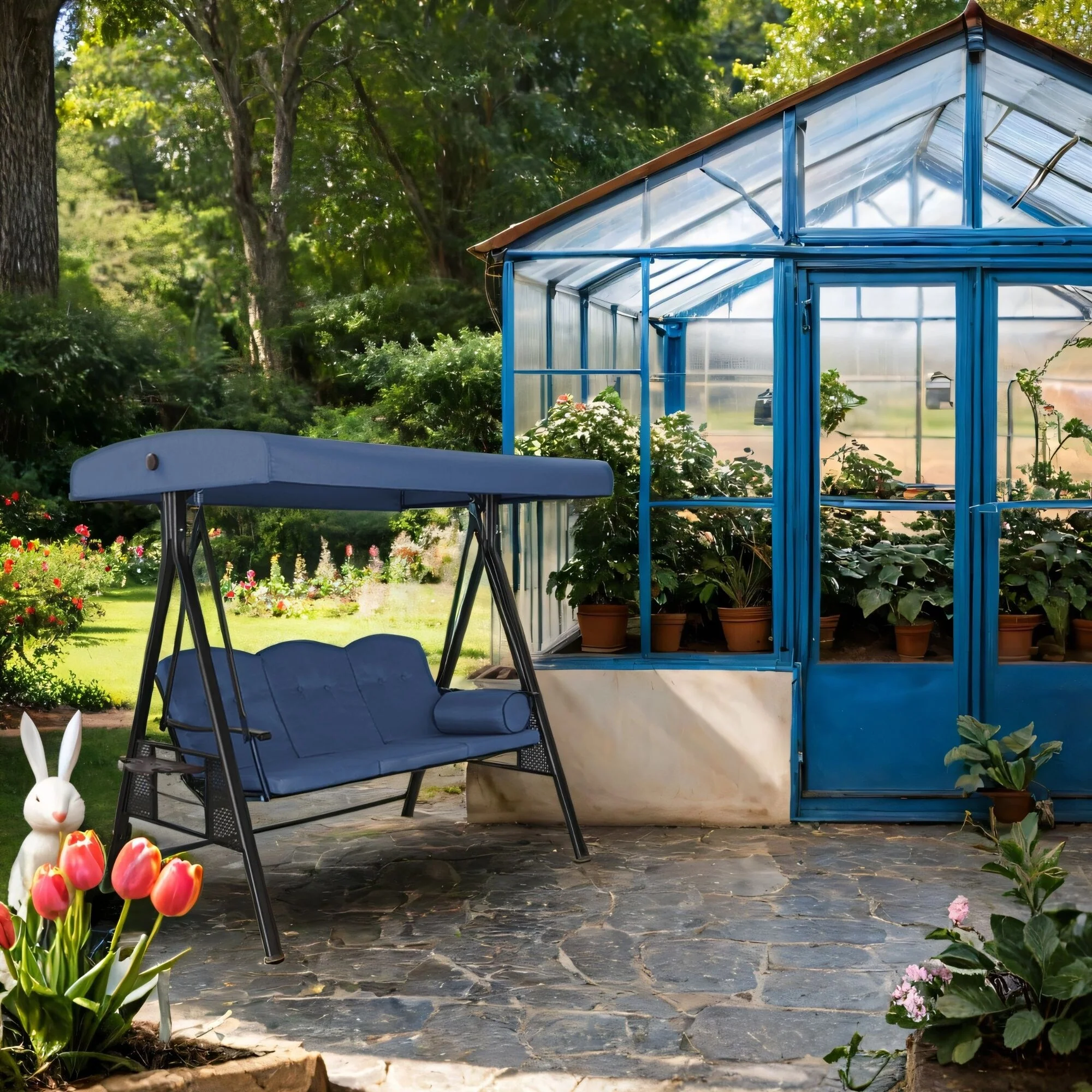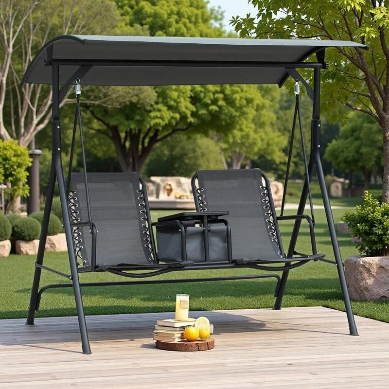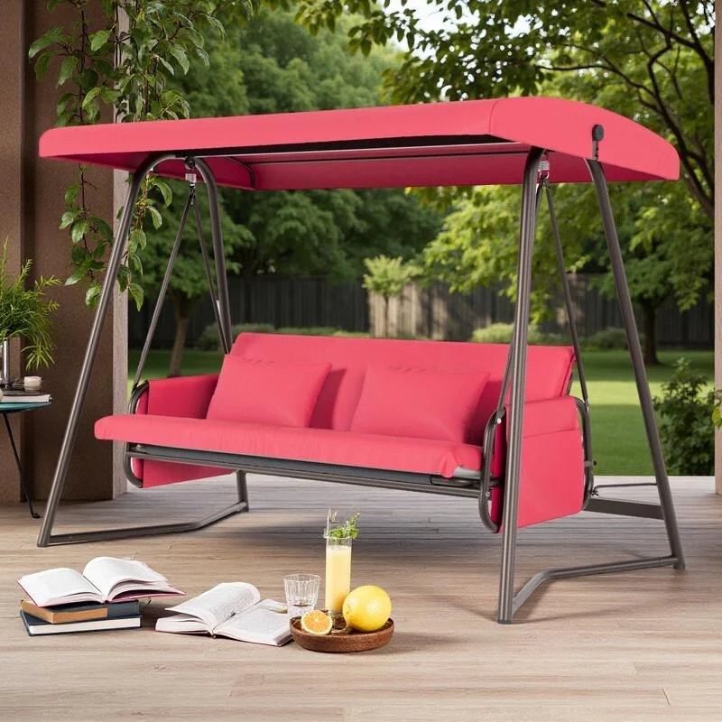 Steel 3-Person Outdoor Canopy Swing With Stand