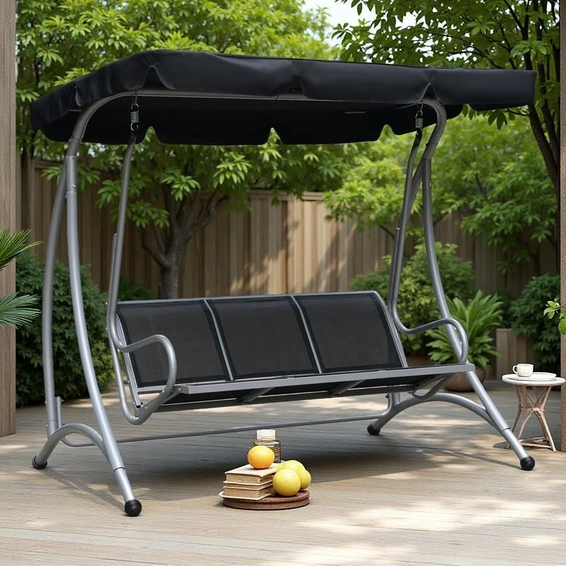 3-Seat Metal Patio Swing, Outdoor Porch Swing Glider with Cushions