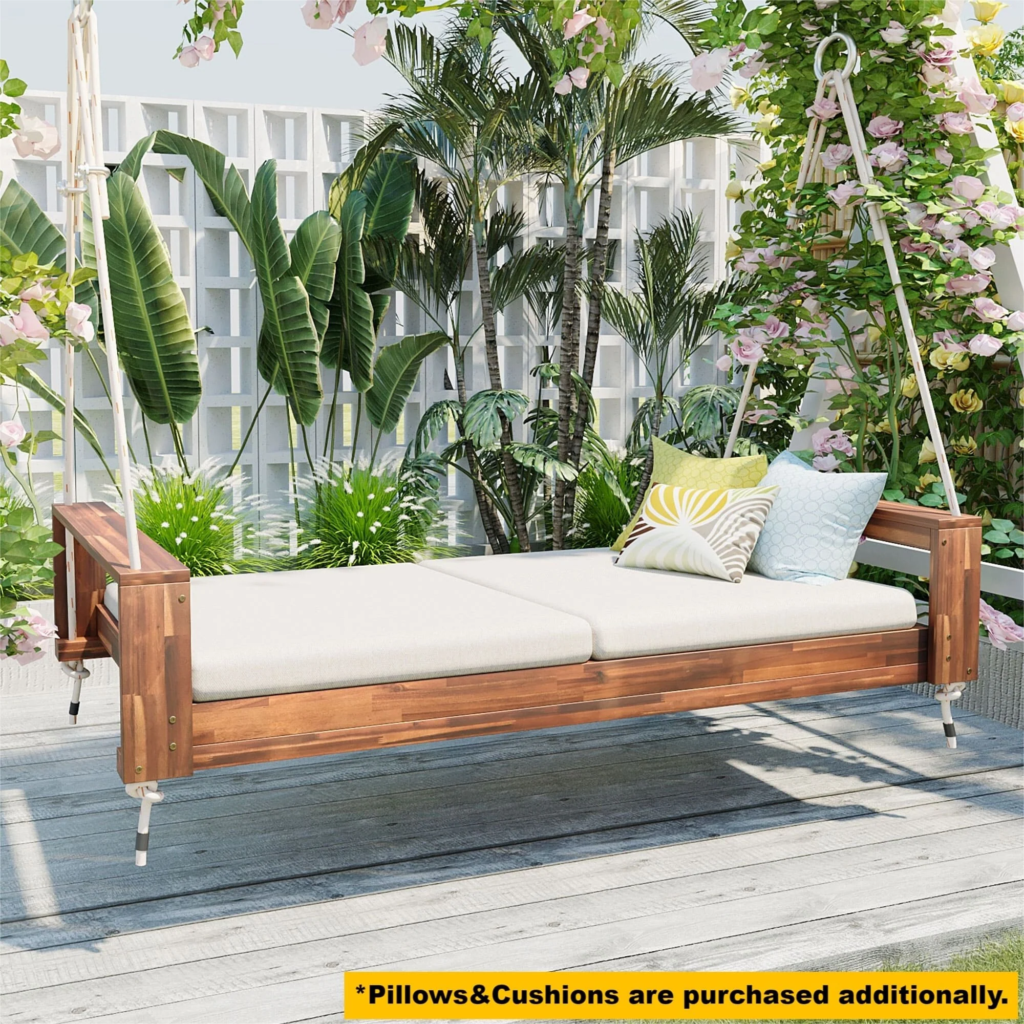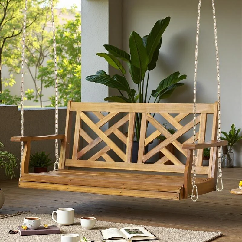 Acacia Wood Porch Swing with 8' Chains and 800lb Capacity