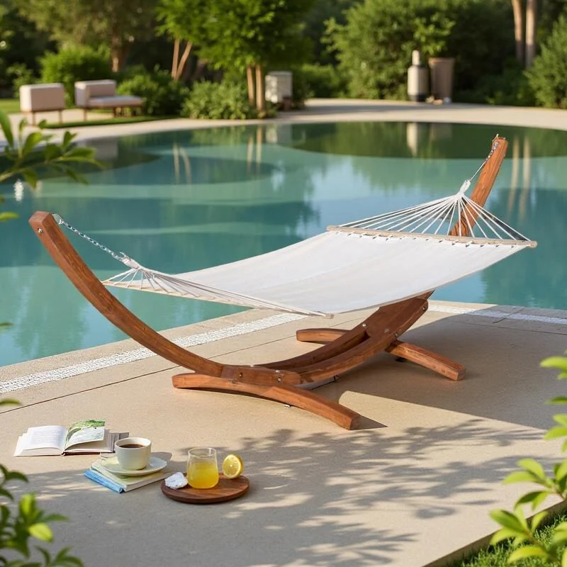Quilted 2-Person Hammock with 13.5 ft. Wooden Curved Arc Stand