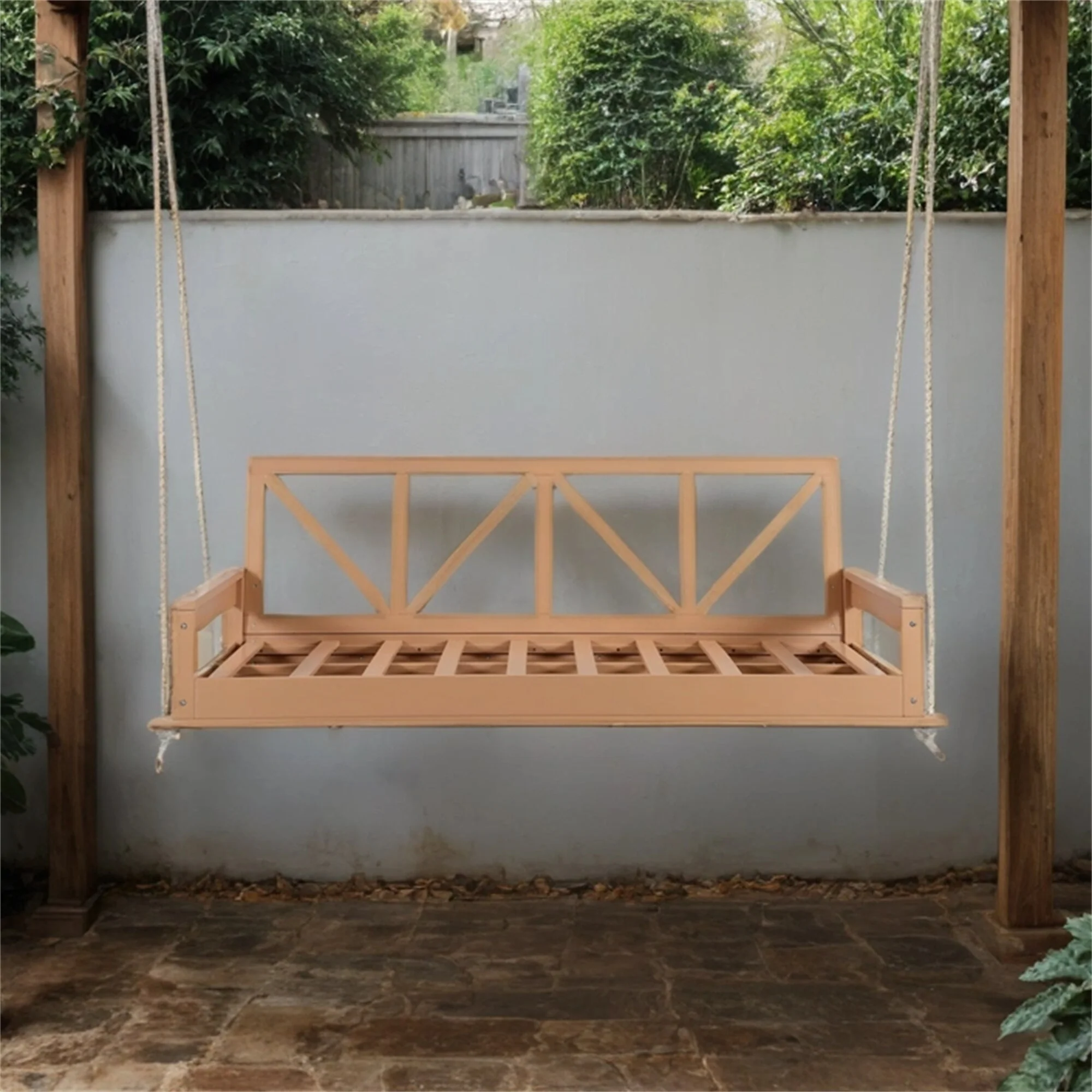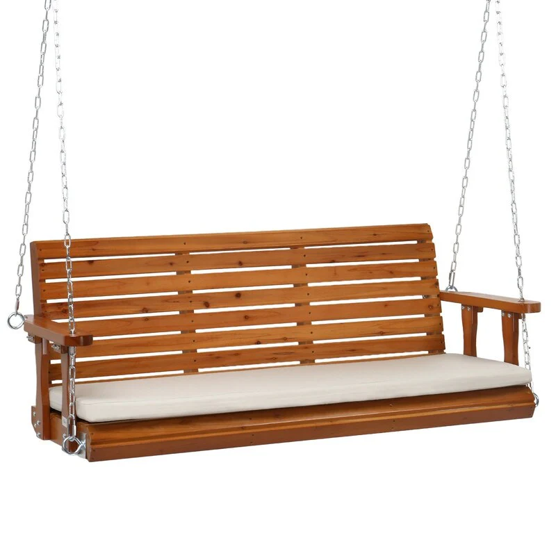 5 ft. 3-Person Wood Outdoor Porch Swing with Cushion - N/A