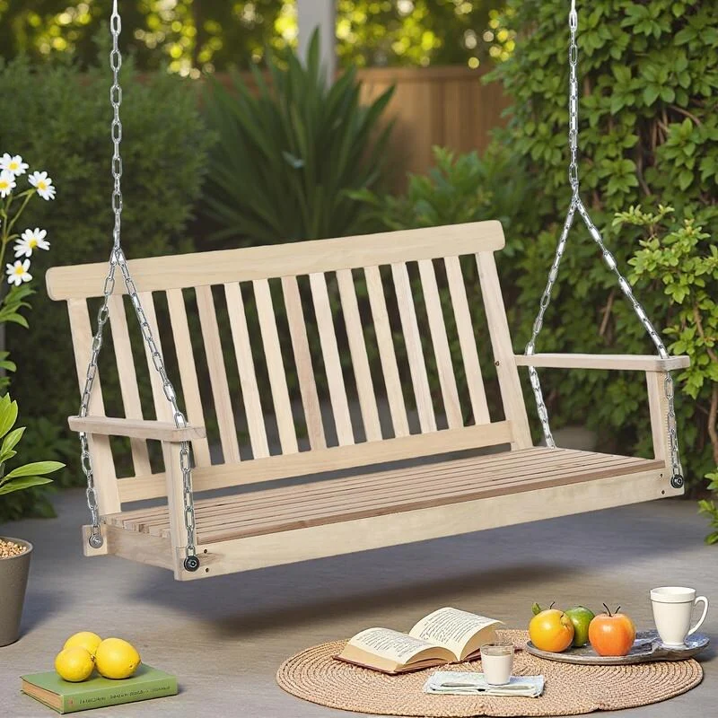 Porch Wood Hanging Swing with Hemp Ropes (No Cushion,Pillow)