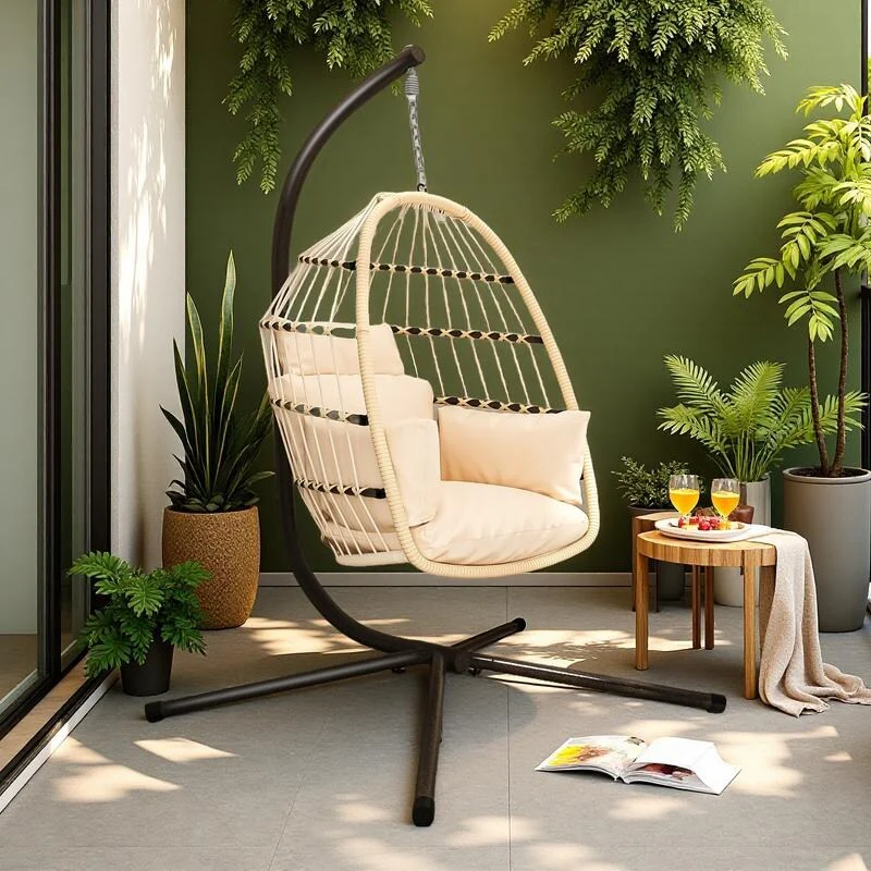 Rattan Egg Chair with Stand & Holder