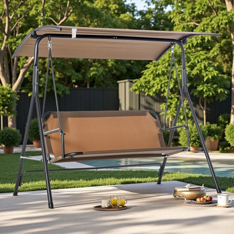 3-Seat Patio Swing Chair, Converting Canopy Swing