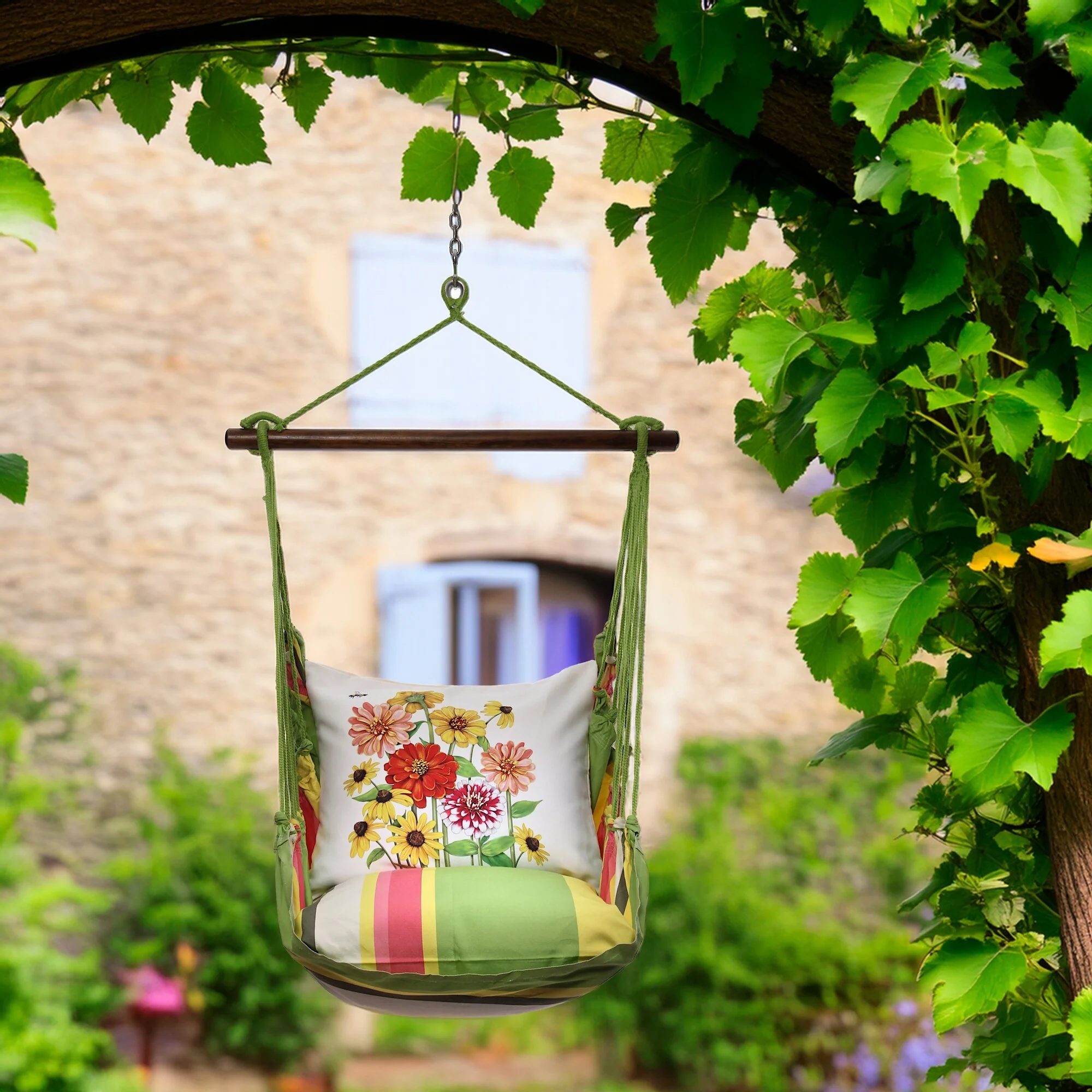 Magnolia Casual Swing Set 4 piece - Fresh Lime Stripe w/ Zinnias
