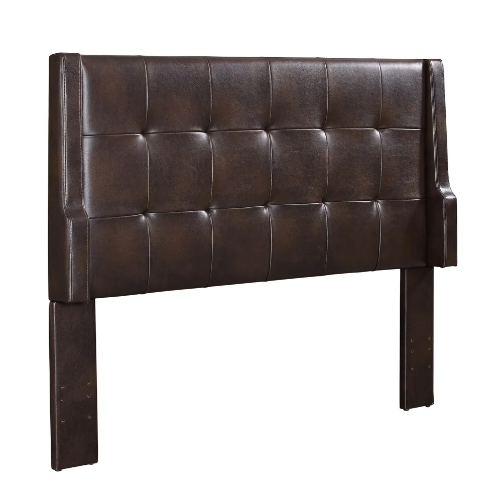 Leatherette Queen and Full Size Headboard with Tufted Details, Brown