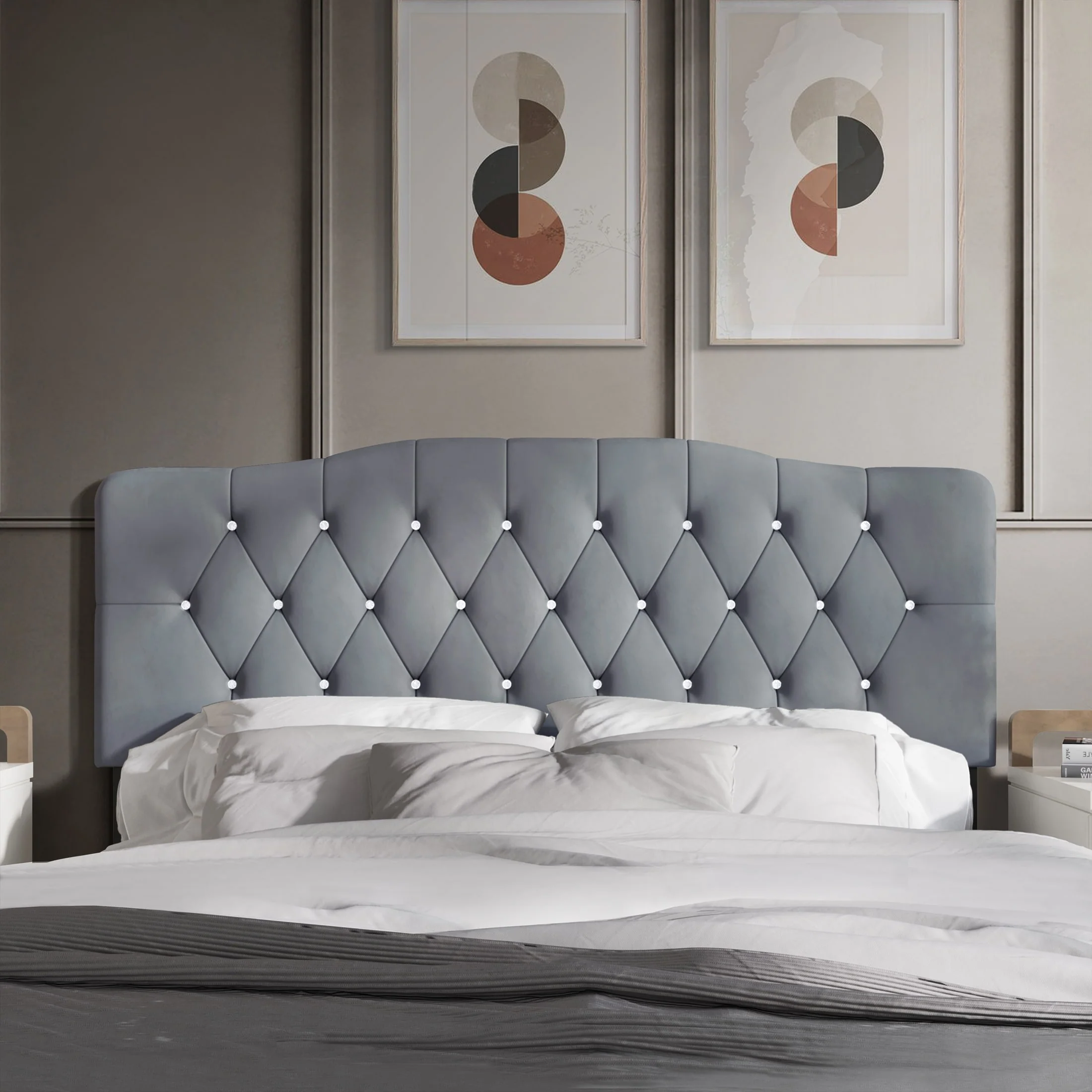 CraftPorch Velvet Button Tufted Curved Adjustable Headboard