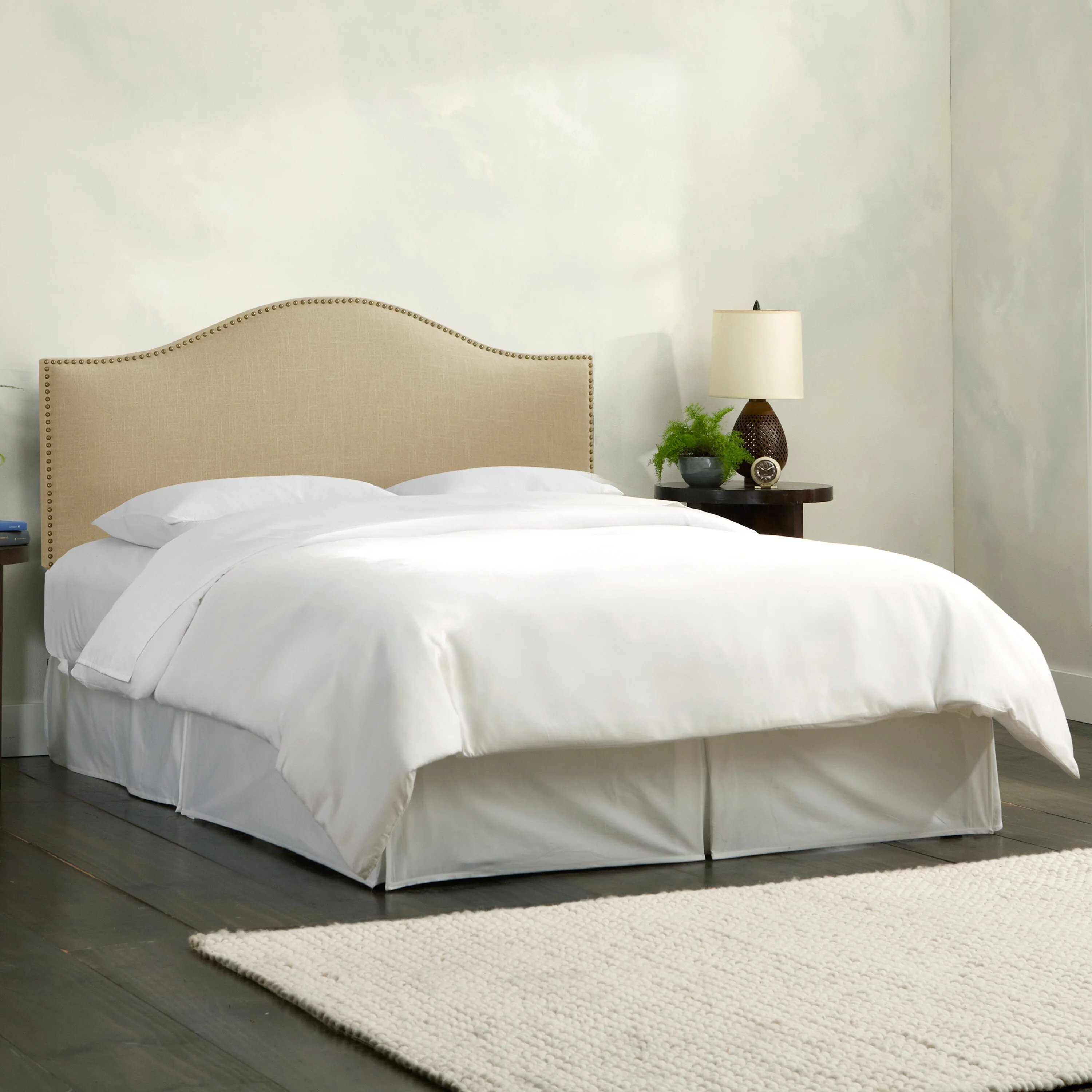 Skyline Furniture Linen Sandstone Nail Button Headboard