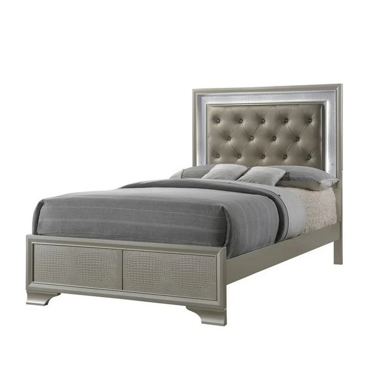 LED Trim Full Size Headboard and Textured Low Footboard, Silver