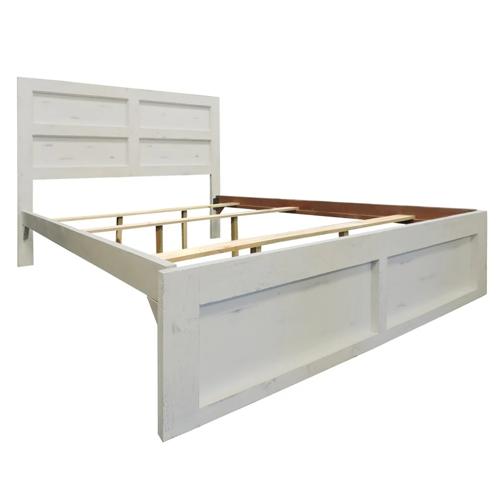 Wooden Queen Bed with Panel Headboard and Grain Details, White