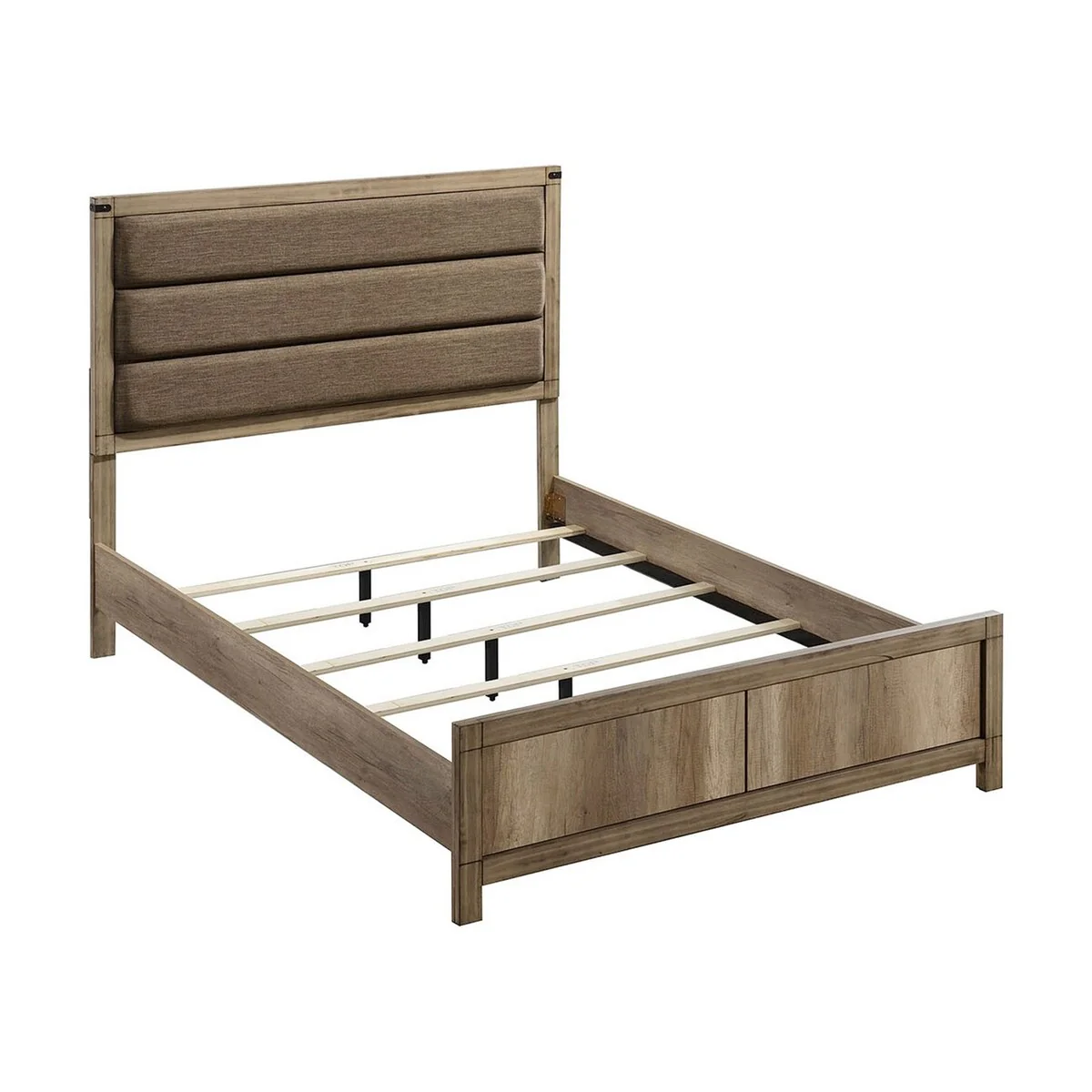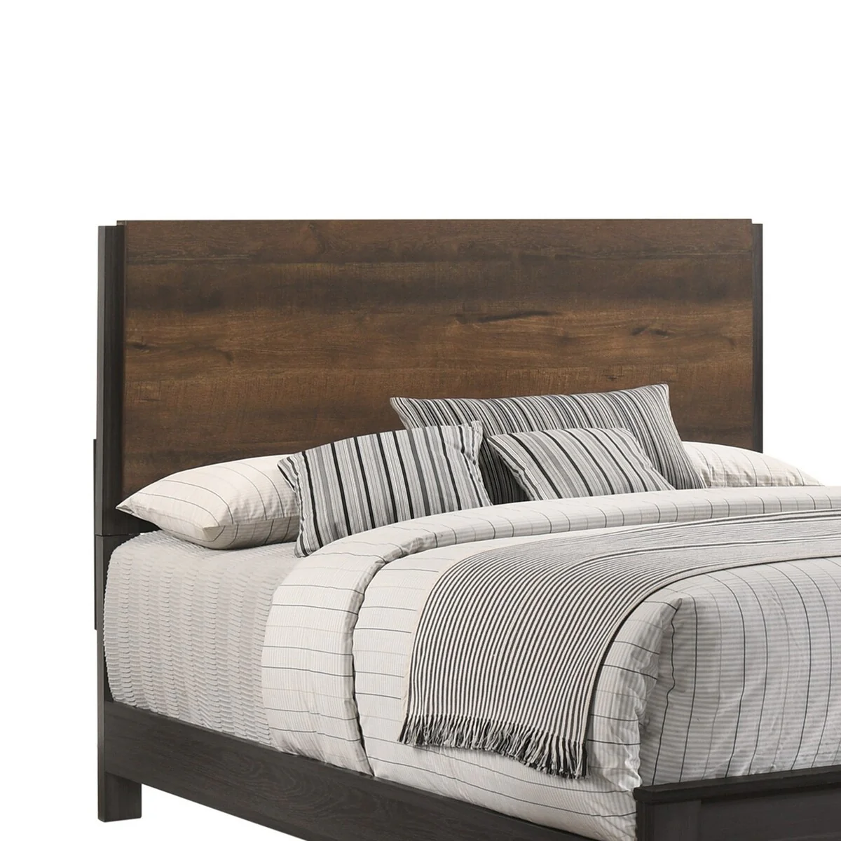 Dual Tone Panel Queen Size Headboard with Wood Trim Edges, Brown