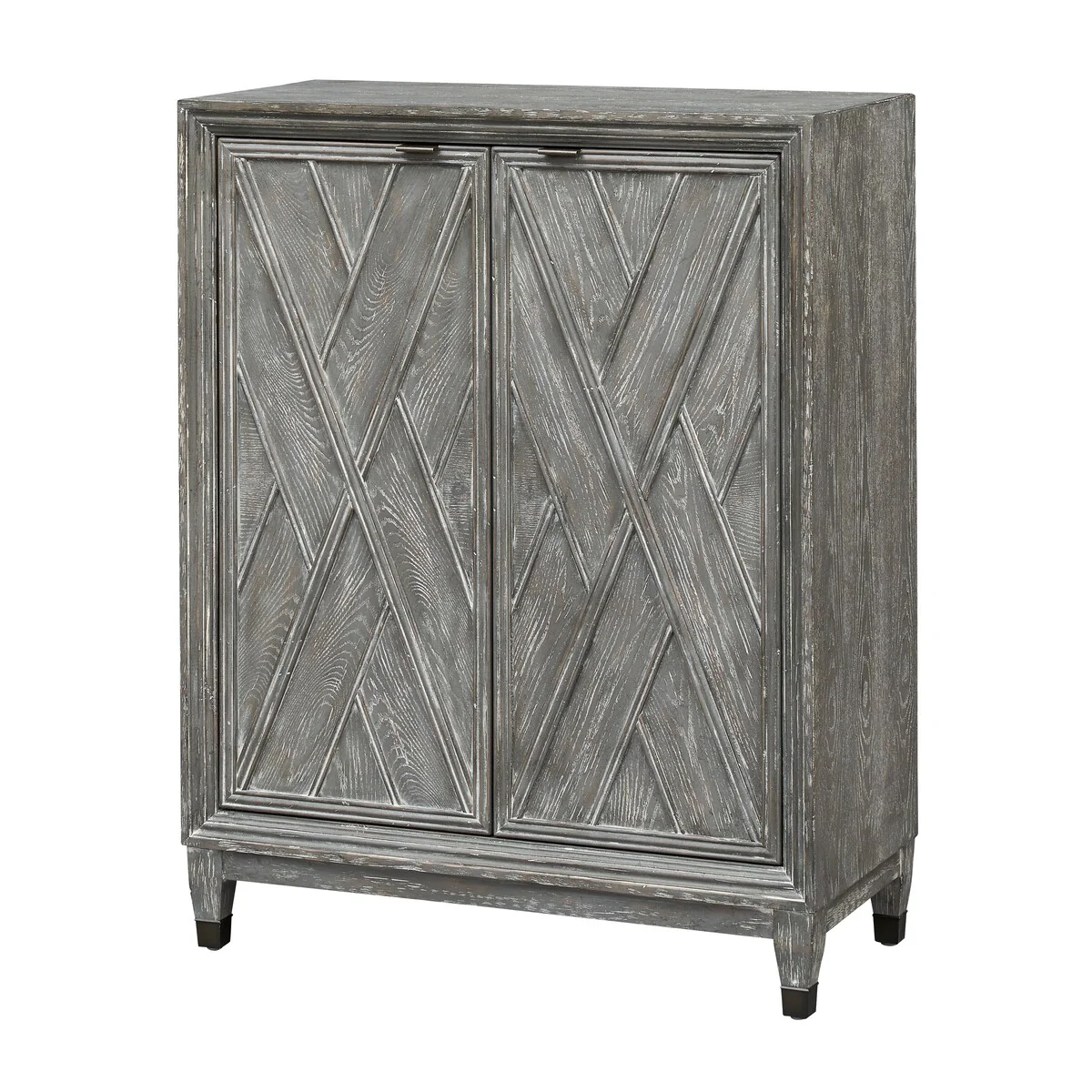 Somette Sterns Blue Grey White Washed Two Door Wine Cabinet - N/A