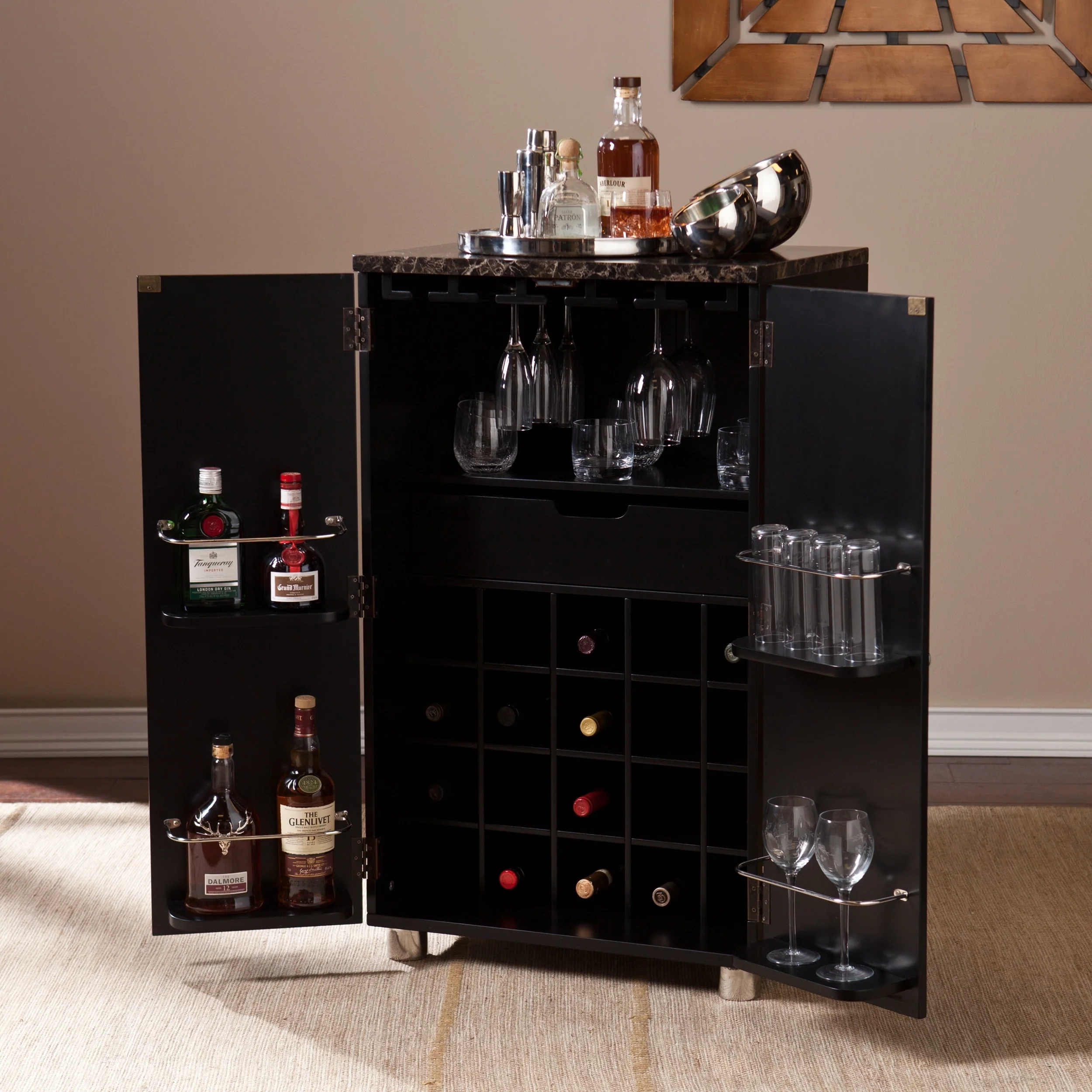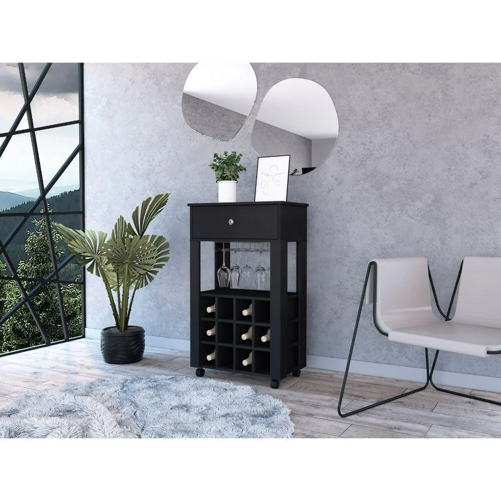 Ambler 1-Drawer 12-Bottle Wine Cabinet Black Wengue