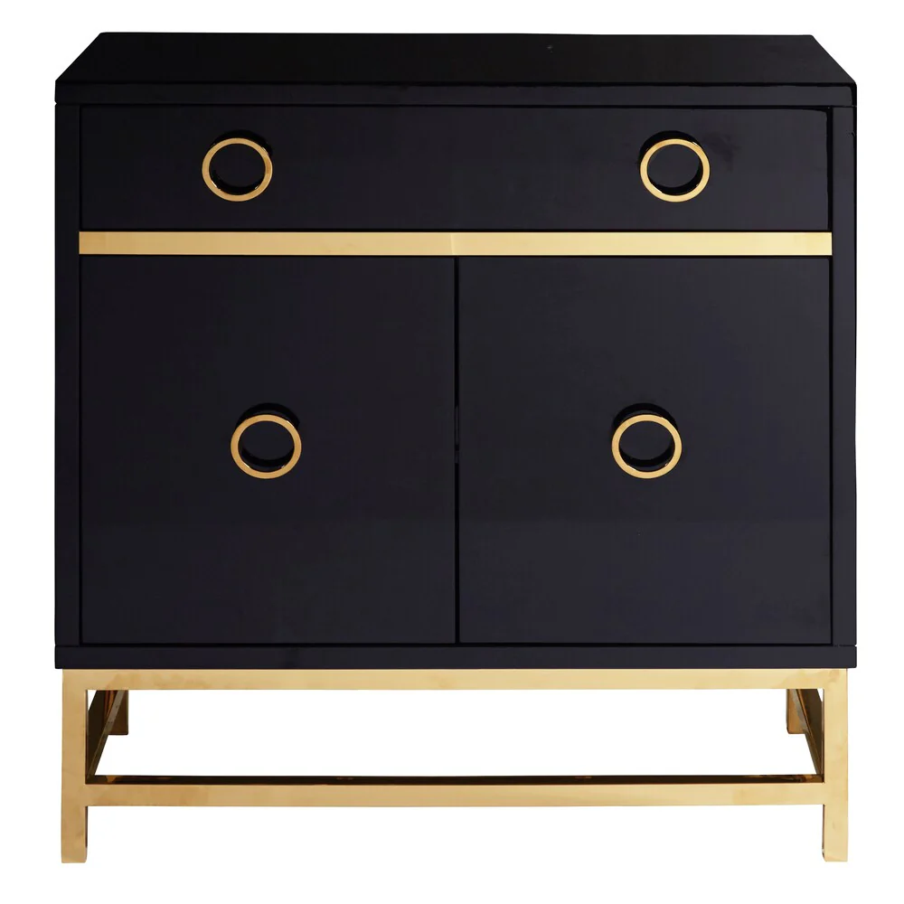 Contemporary High Gloss Black Two Door Accent Wine Cabinet