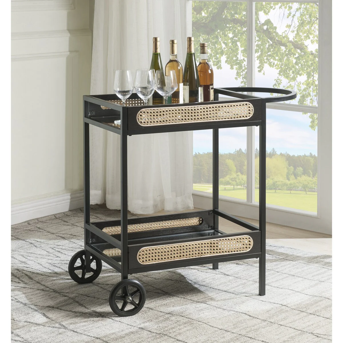 Hampton Bar Cart with Shelf and Wheels, Cream