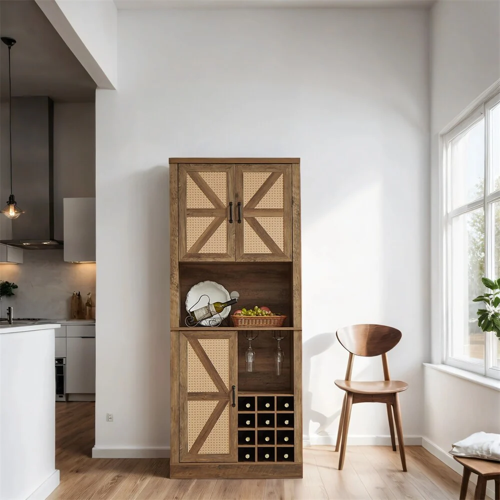 TUHOME Syrah Corner Bar Cabinet with 2-Doors and 8 Cubbies - N/A