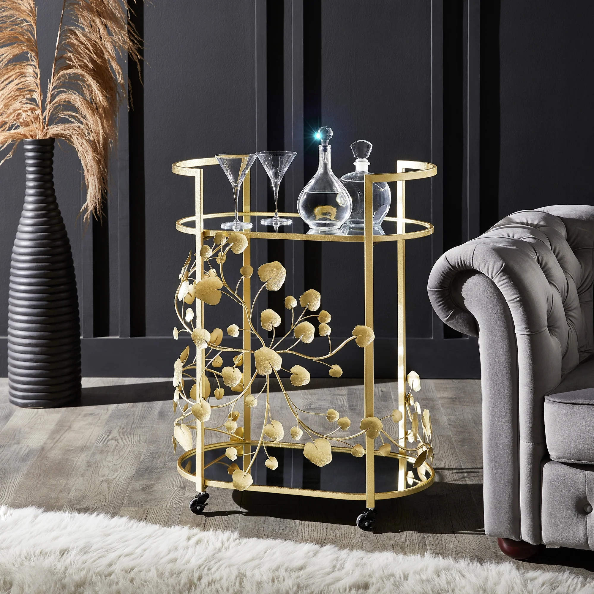 Uttermost 24198 Dolly 22 Wide Iron and Tempered Glass Bar Cart with