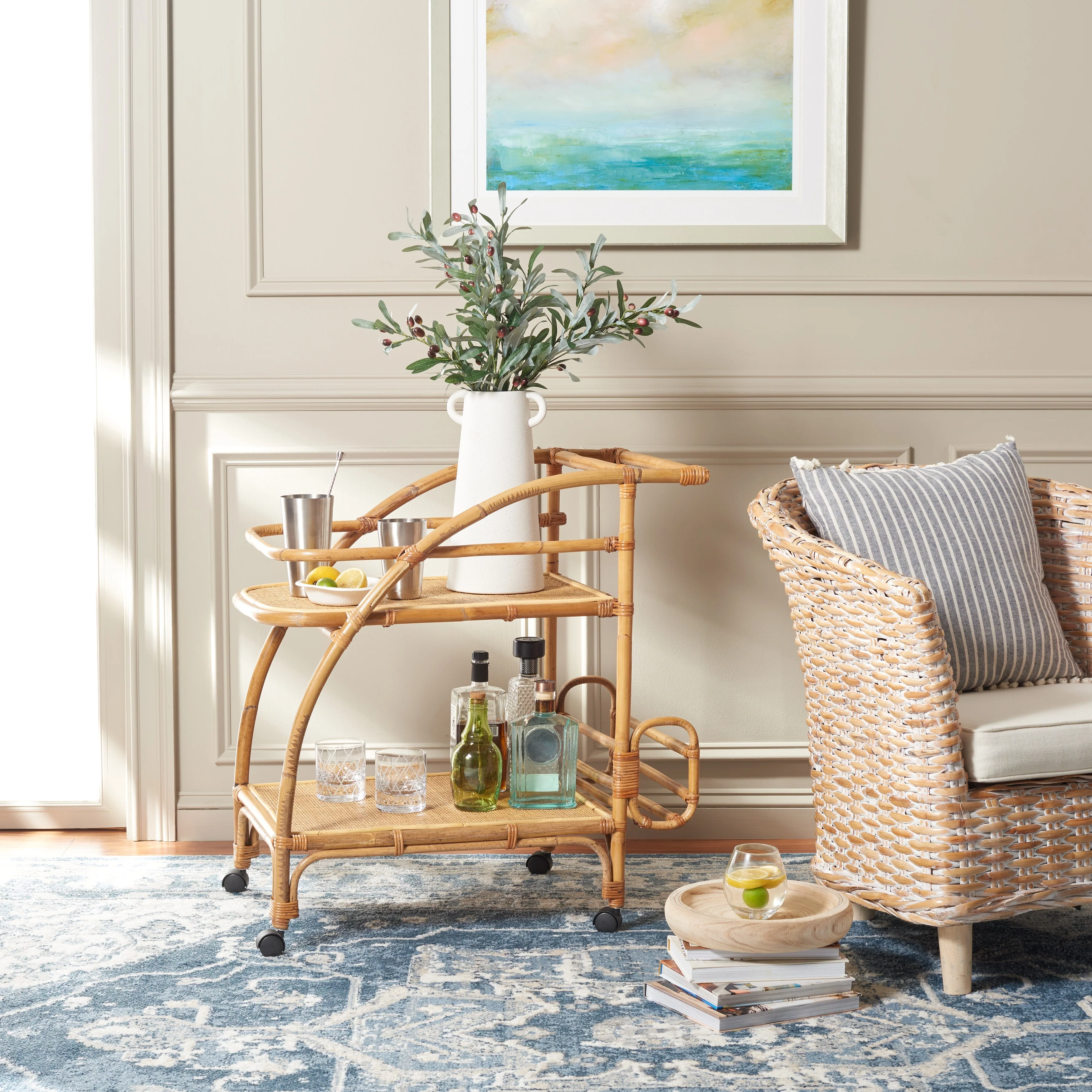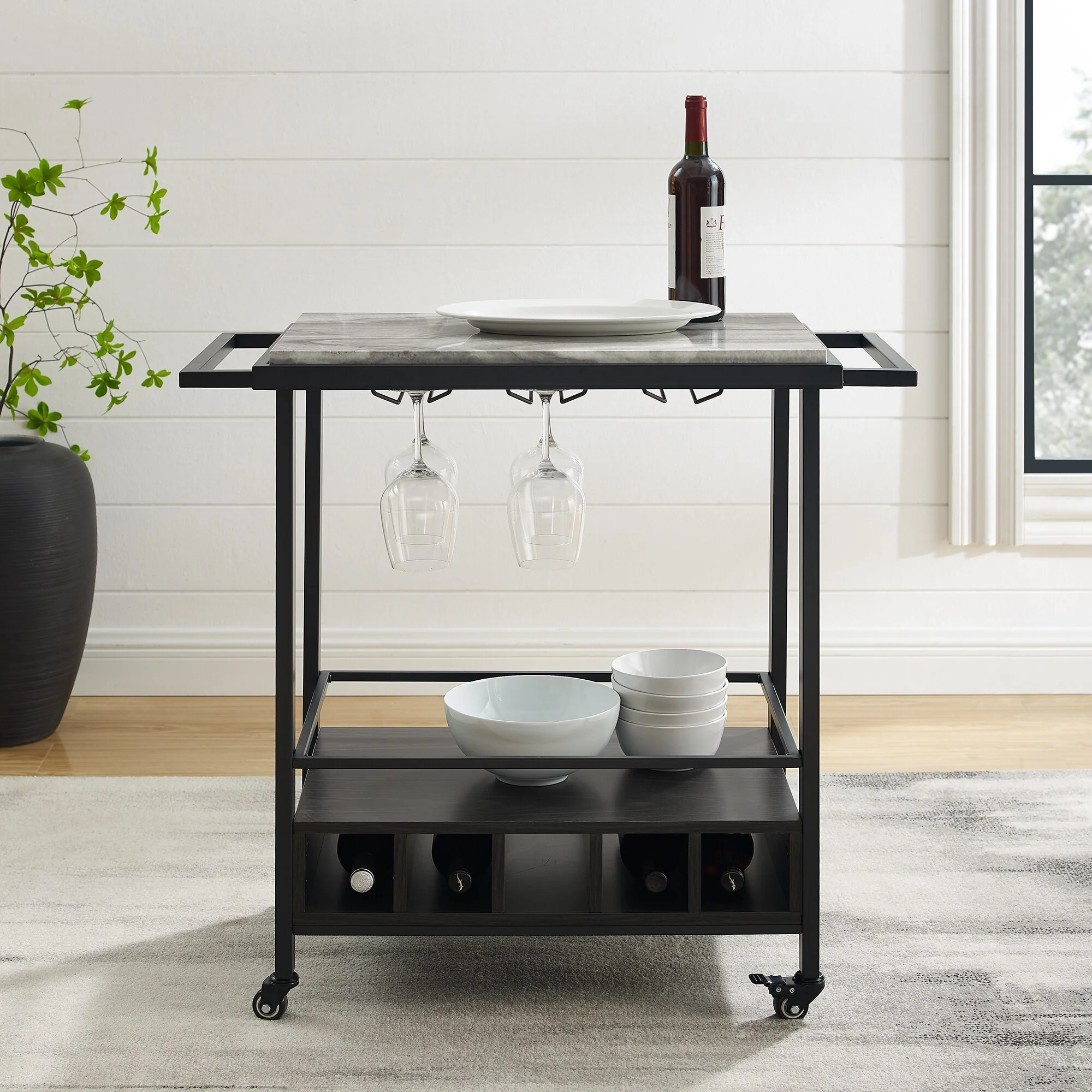 Middlebrook Faux Marble Serving Bar Cart