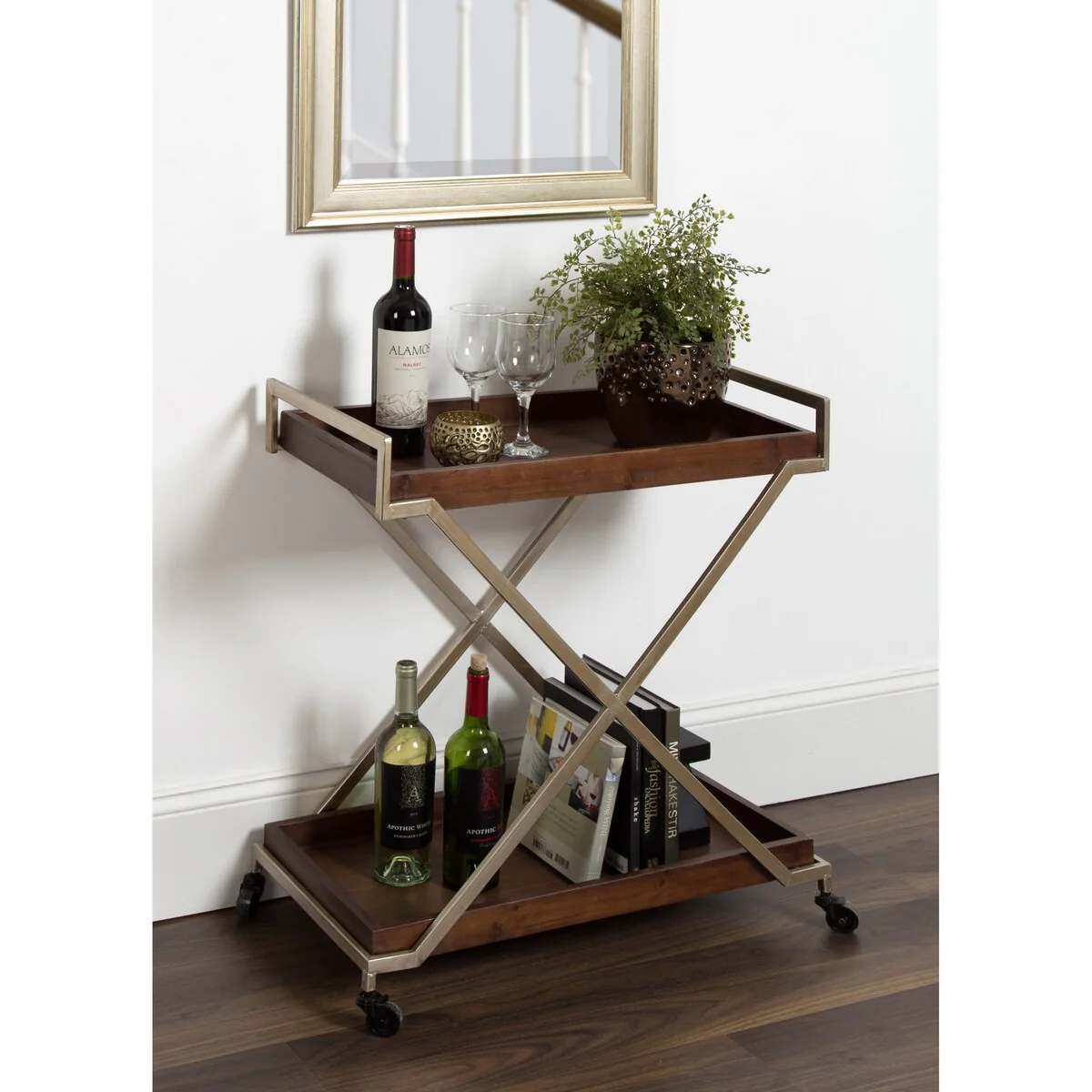 Palmer Merlot 2-tier Rectangular Wood Bar Cart