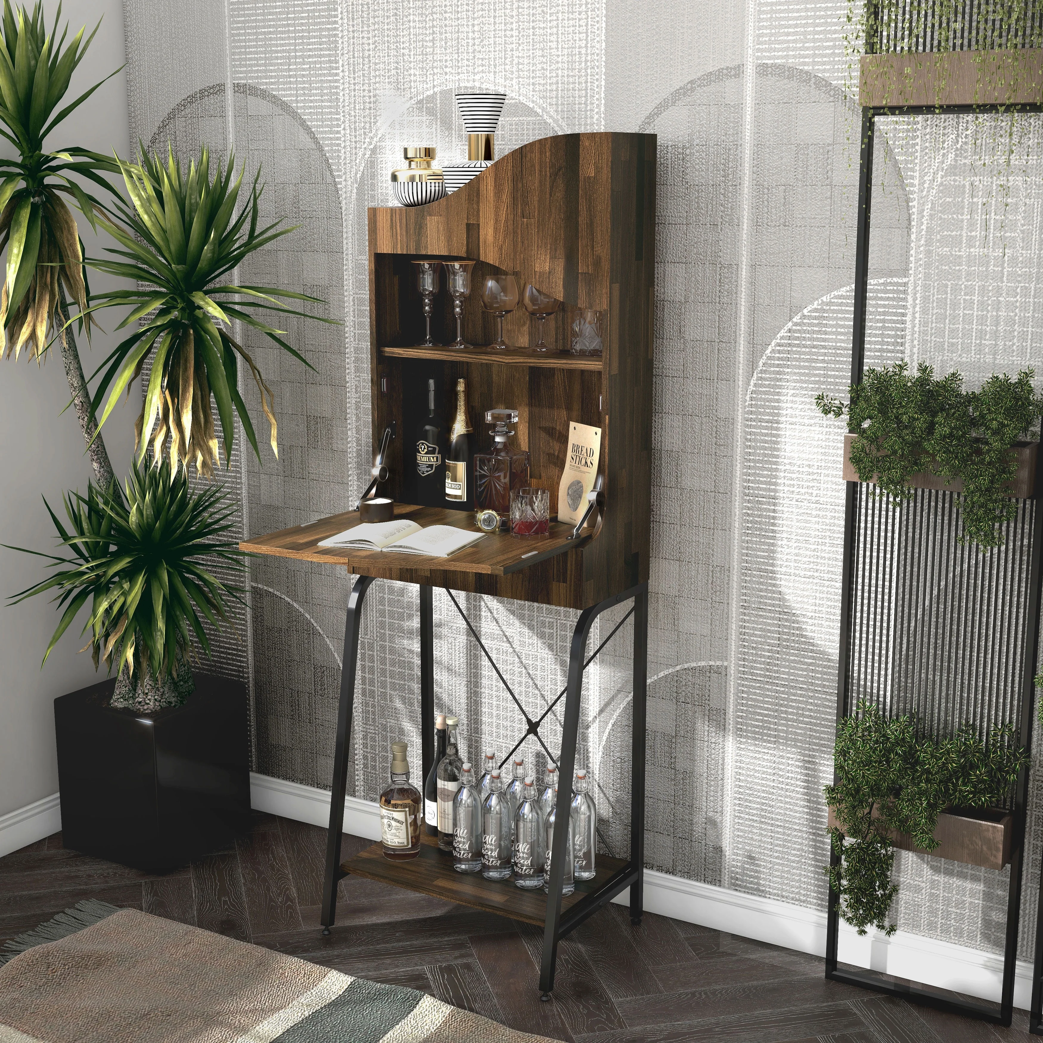 DH BASIC Urban Light Hickory 2-Open Shelf Mini Bar by Denhour