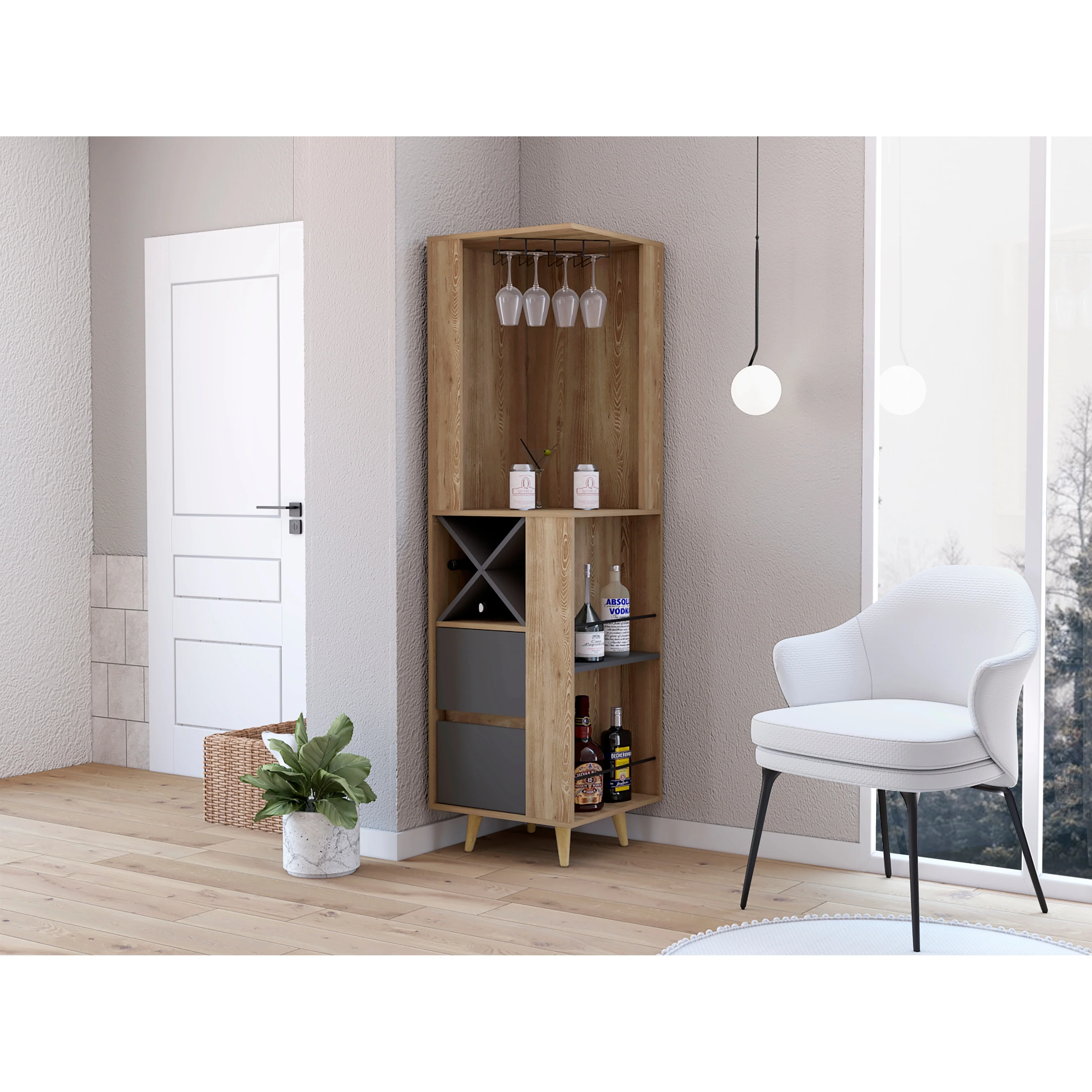 Audra Corner Wine Rack, Two Shelves, Four Shelves With Door