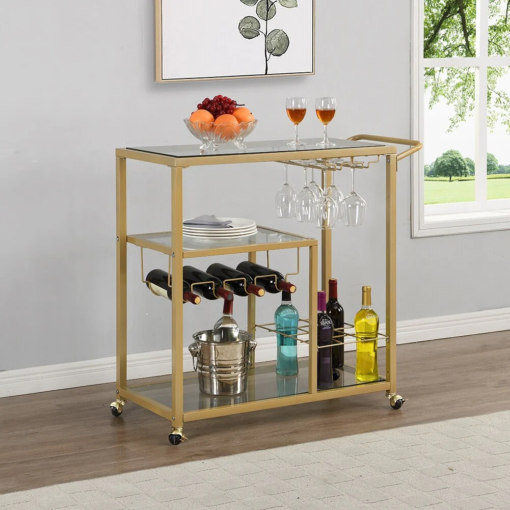 Storage Bar Cart Kitchen Shelf Serving Cart With Wine Rack
