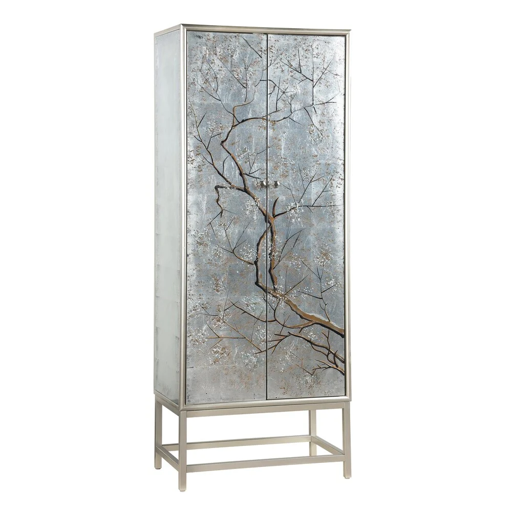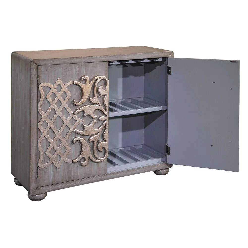Grey Wood Metallic Overlay Bar Cabinet