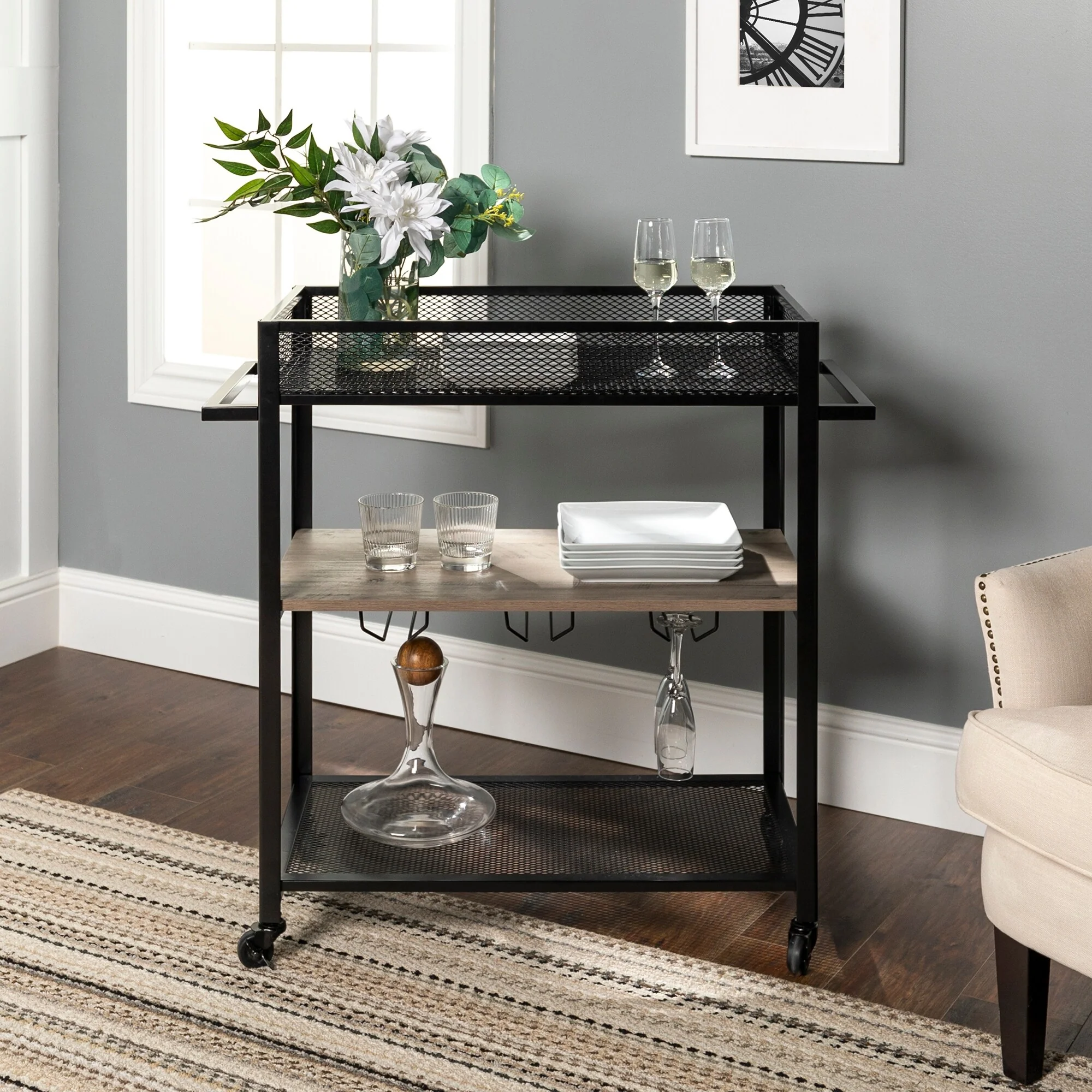 DISCO Urban Bar Cart with Shelf and Stemware Hangers