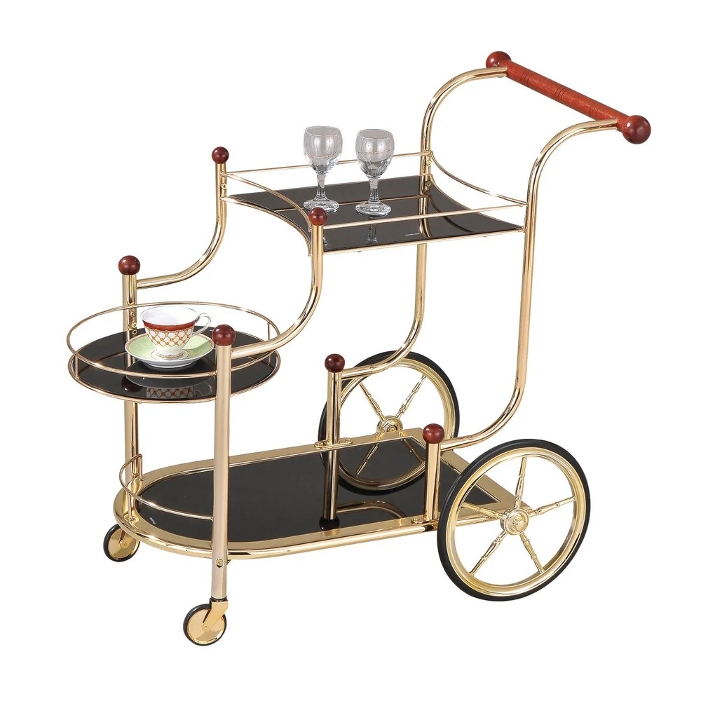 Acme Furniture Lacy Serving Cart, Golden Plated and Black Glass