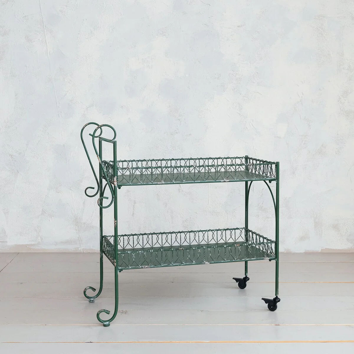 Distressed Metal Bar Cart on Wheels