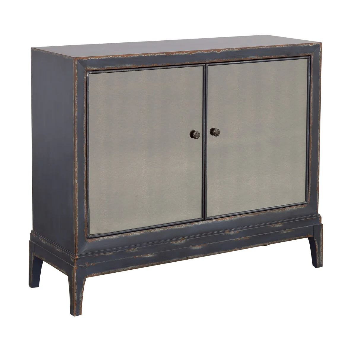 Boone Textured Dark Blue Two Door Cabinet with Smoked Glass Inlay