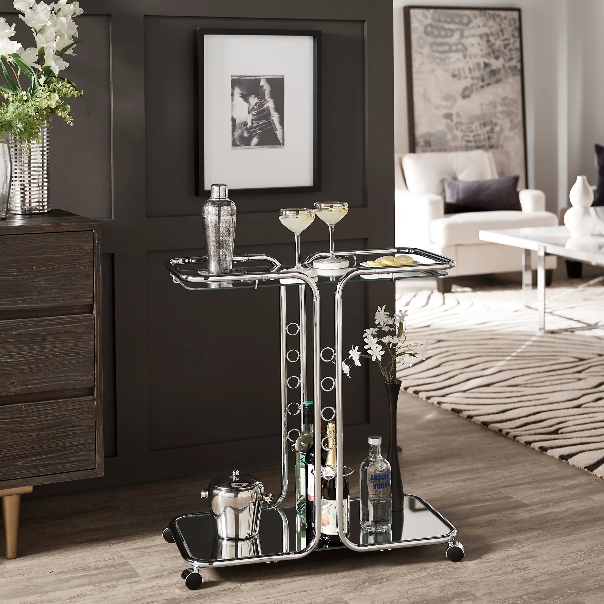Rosewood Chrome Finish Bar Cart by iNSPIRE Q Bold