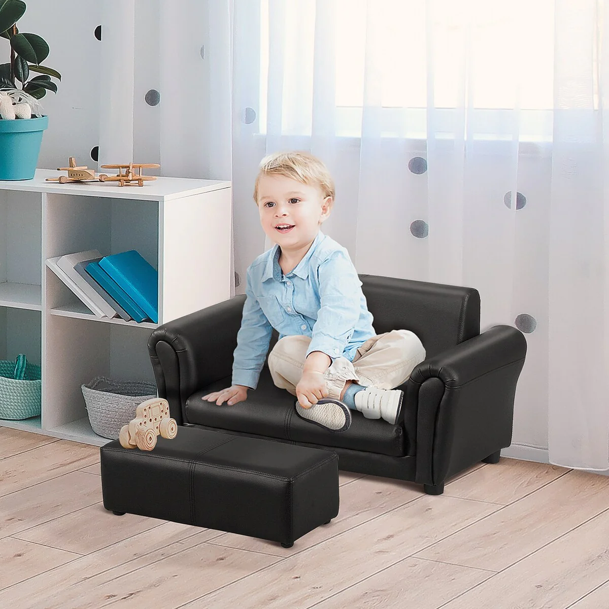 Qaba Kids Sofa Set with Footstool for Toddlers and Babies, Black