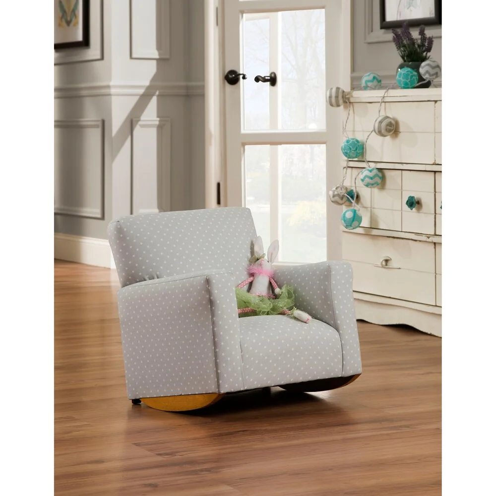 Pink and White Polka Dot Upholstered Rocking Chair
