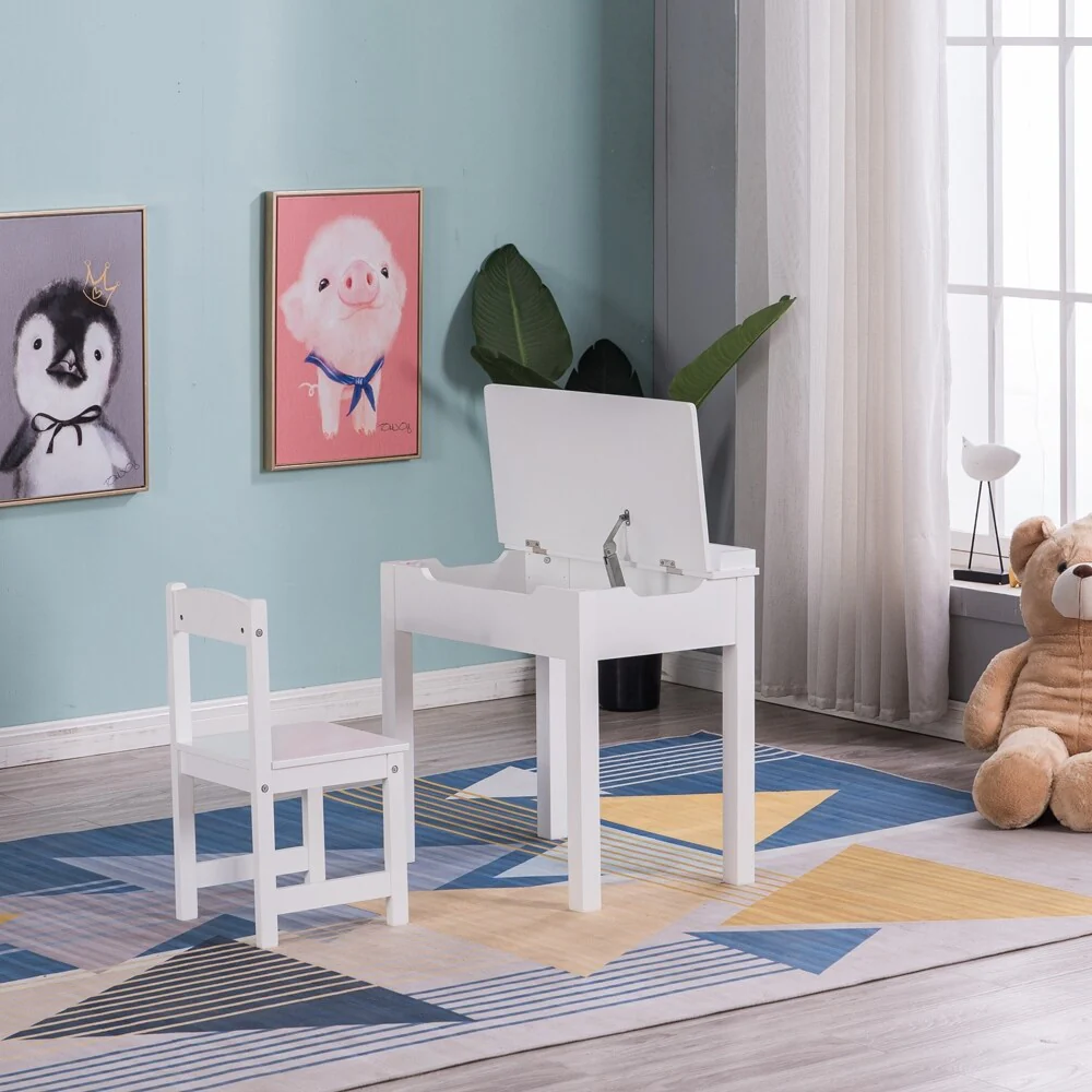 Wood Children's Study Table and Chair Set of 2 Can Open Drawers