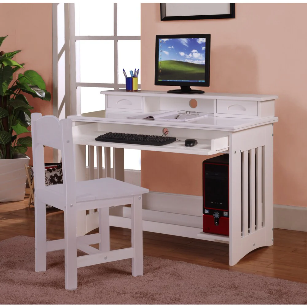 White Wood Writing Desk with Keyboard Tray