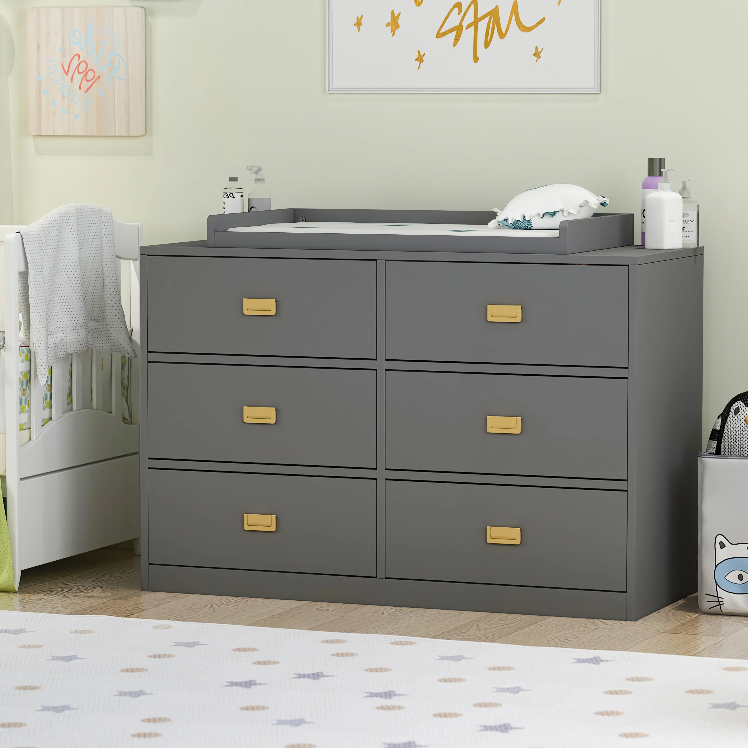Kerrogee 6-Drawer Dresser with Changing Table - Grey
