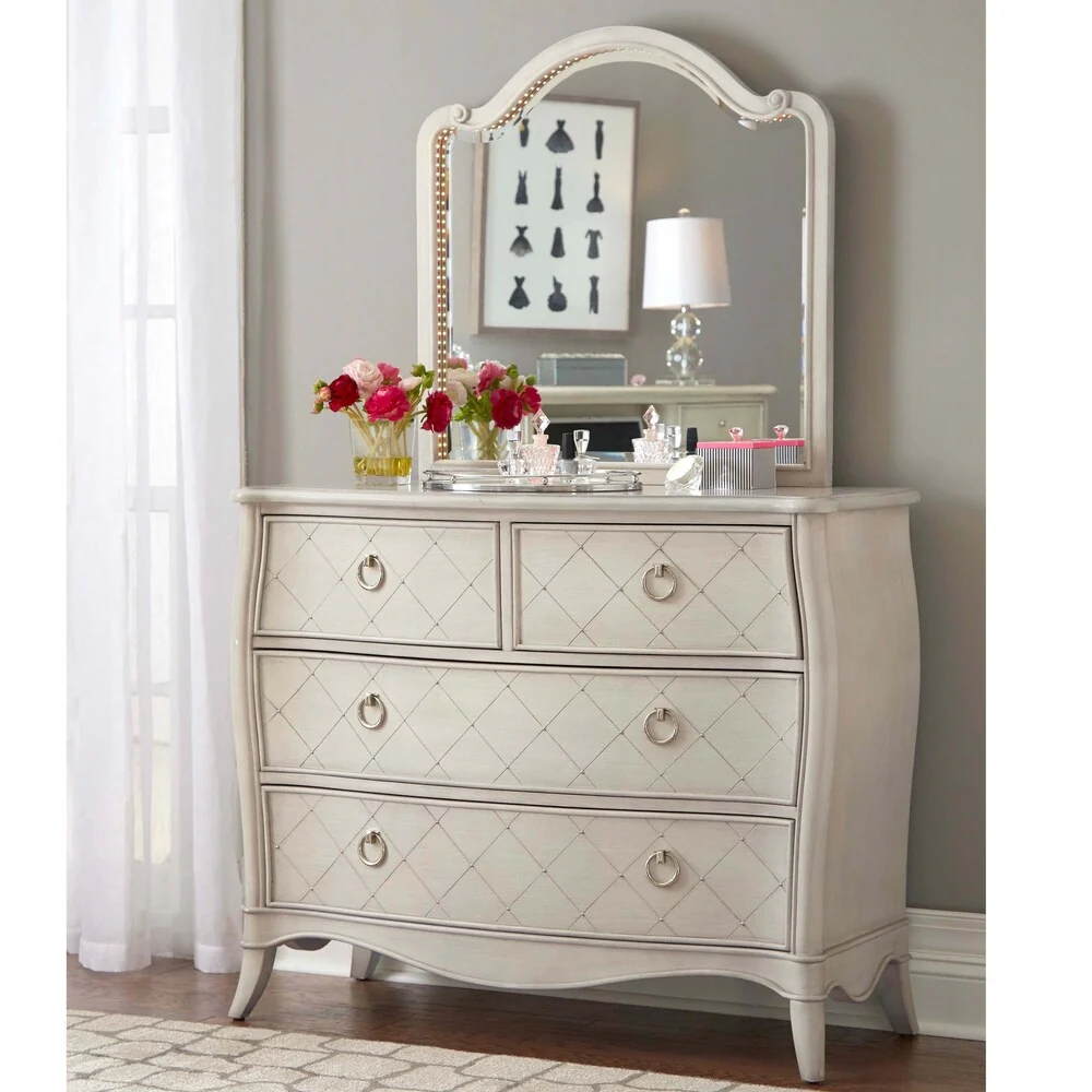 Hillsdale Angela 4 Drawer Chest with Wood Arc Mirror, Opal Grey