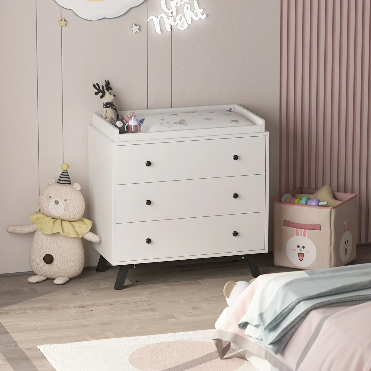 Kerrogee 3-Drawer Dresser with Changing Table - White