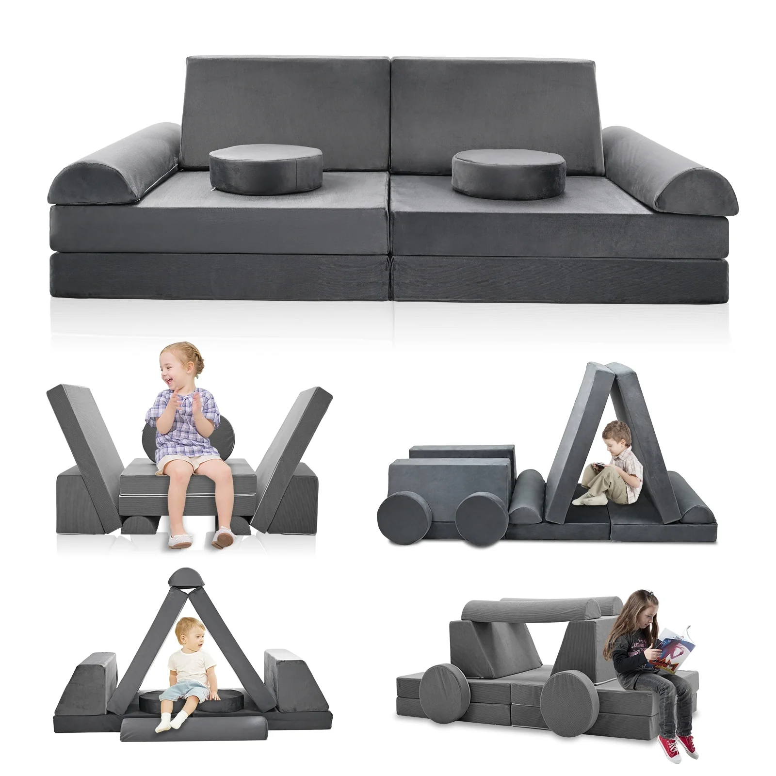 DoCred Kids Play Couch Sofa Set, Modular Toddler Sofa, Grey